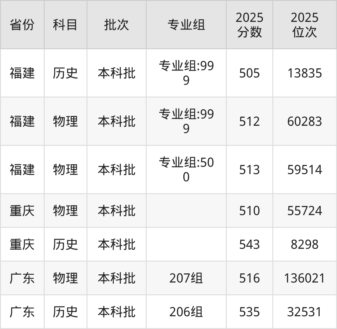 2025年投档录取最低分为509分,录取最低位次为13322名。