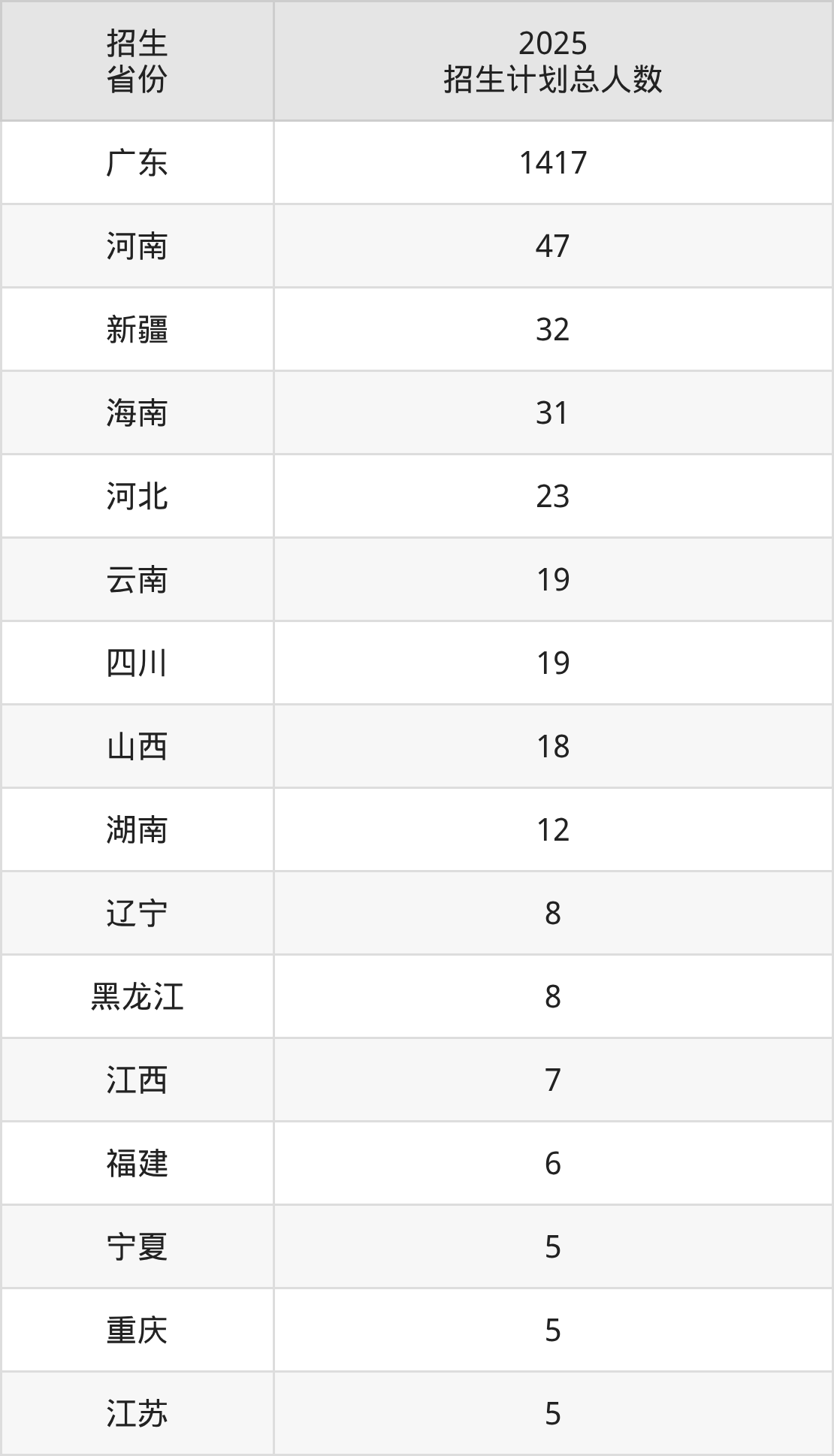 2025年广州科技贸易职业学院面向全国24个省市开展专科招生;招生专业共28个,招生人数共1695人。2025年在广东省招生计划总人数是1417人,其中,广州科技贸易职业学院在广东省招生人数最多的是云计算技术应用。广州科技贸易职业学院在各省具体招生人数情况如下表。