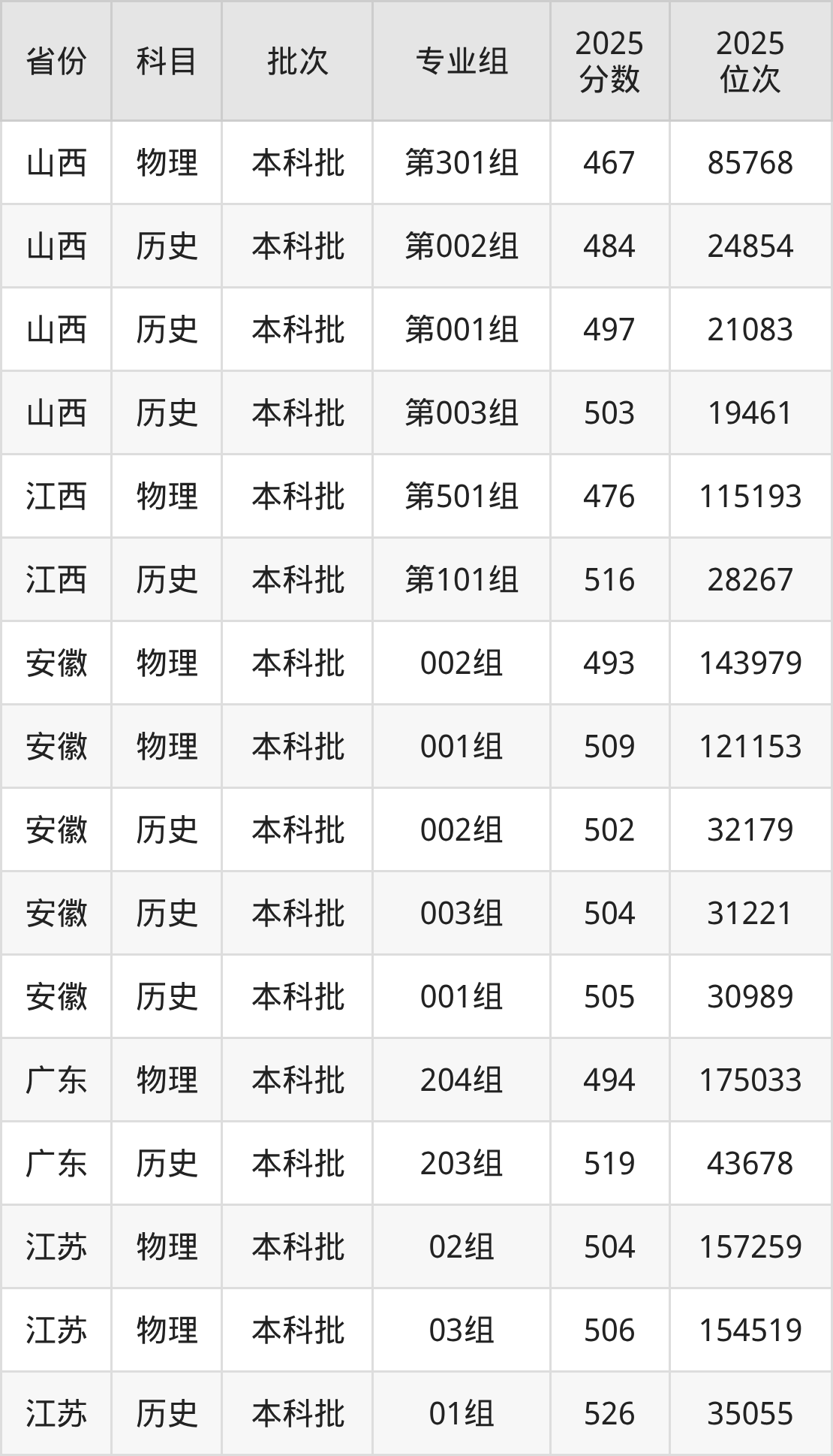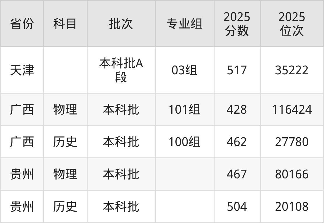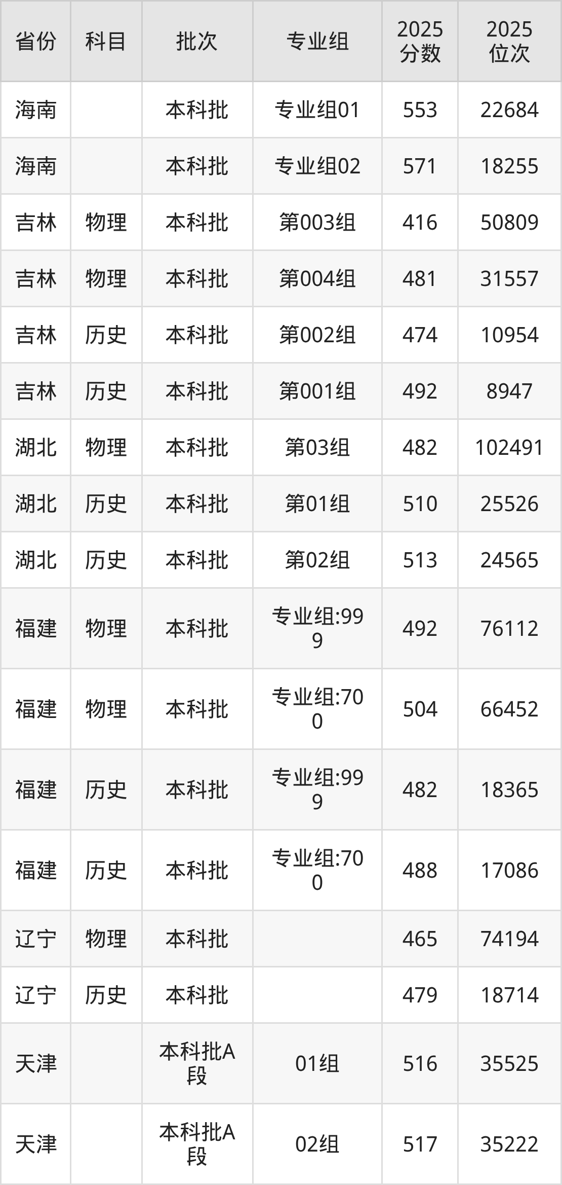 2025年投档录取最低分为465分,录取最低位次为74194名。