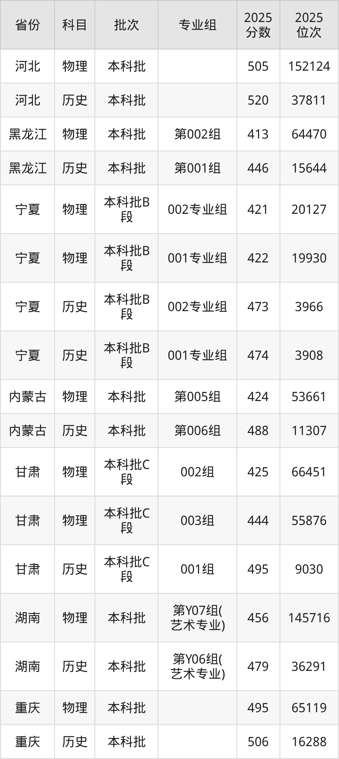 2025年投档录取最低分为506分,录取最低位次为16288名。