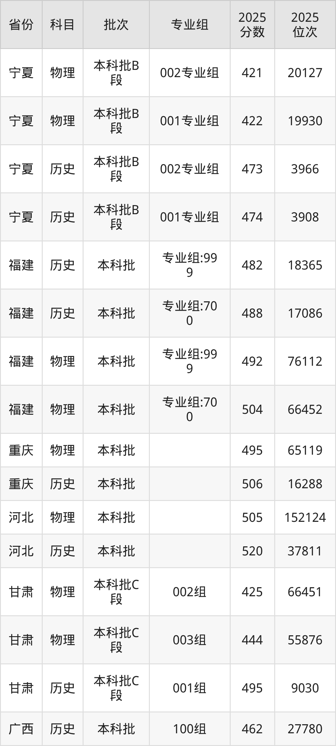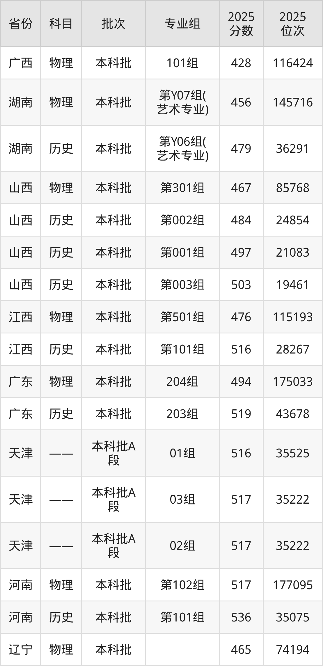 普通类本科物理类最低467分,本科历史类最低504分