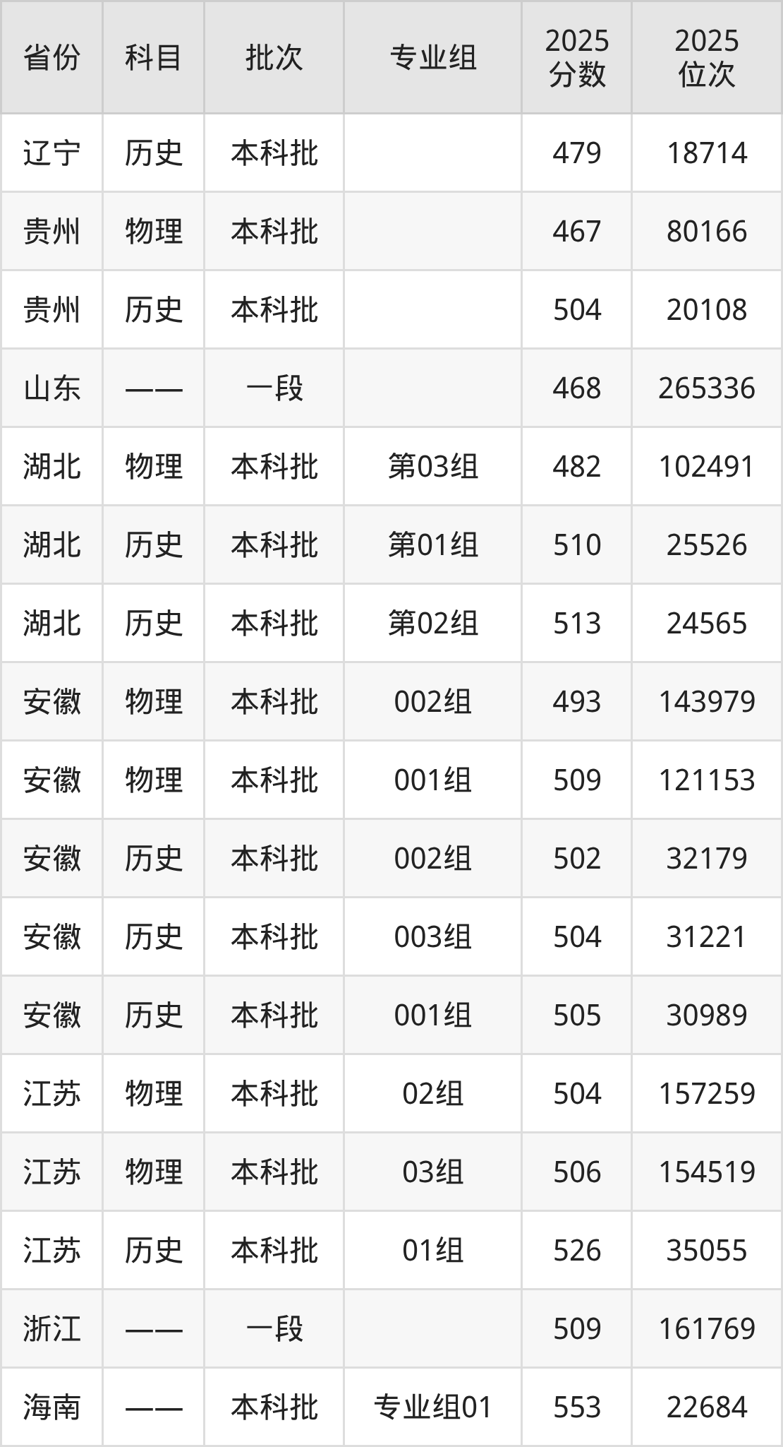 2025年投档录取最低分为479分,录取最低位次为18714名。