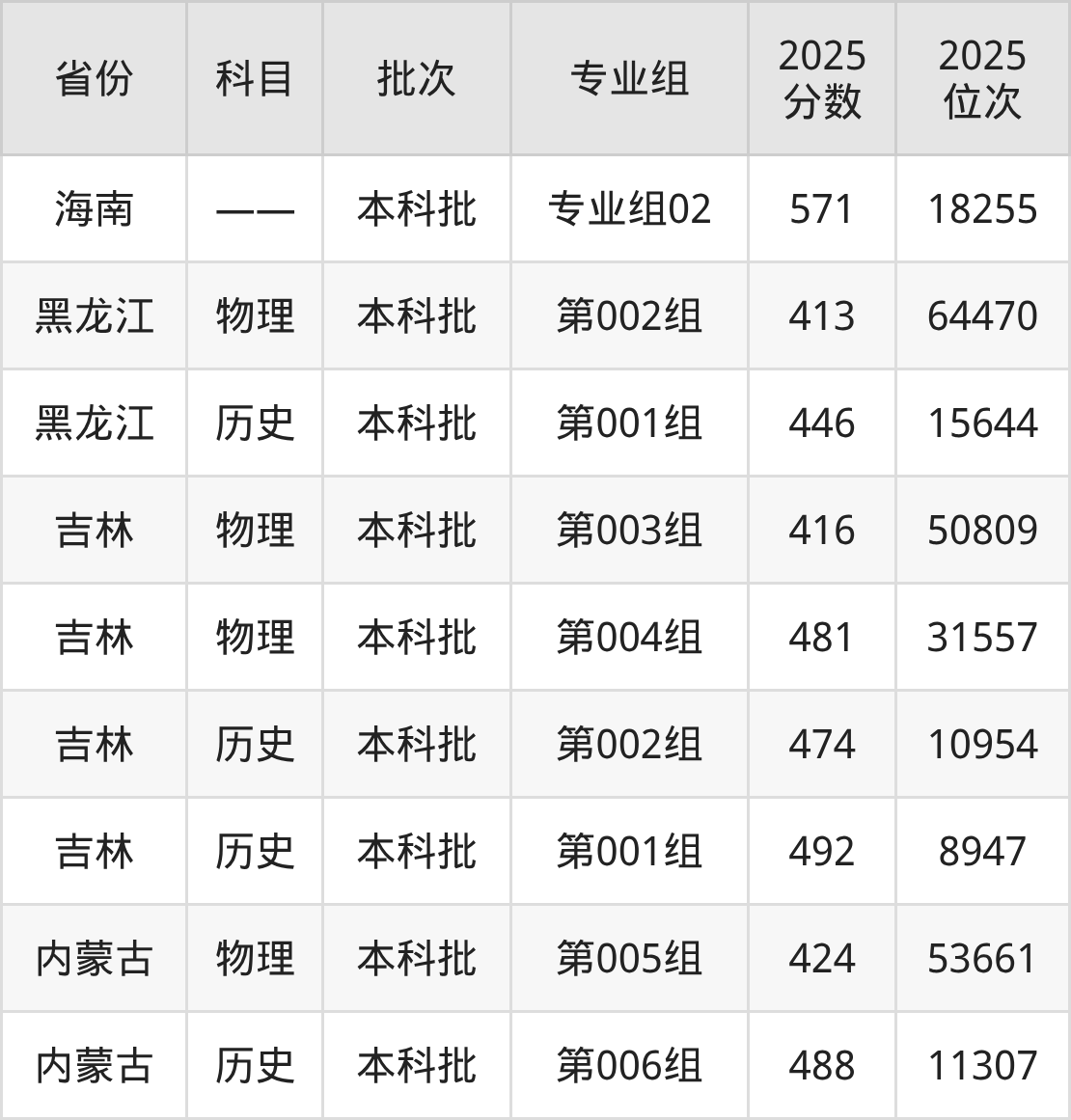 普通类本科物理类最低493分,本科历史类最低502分