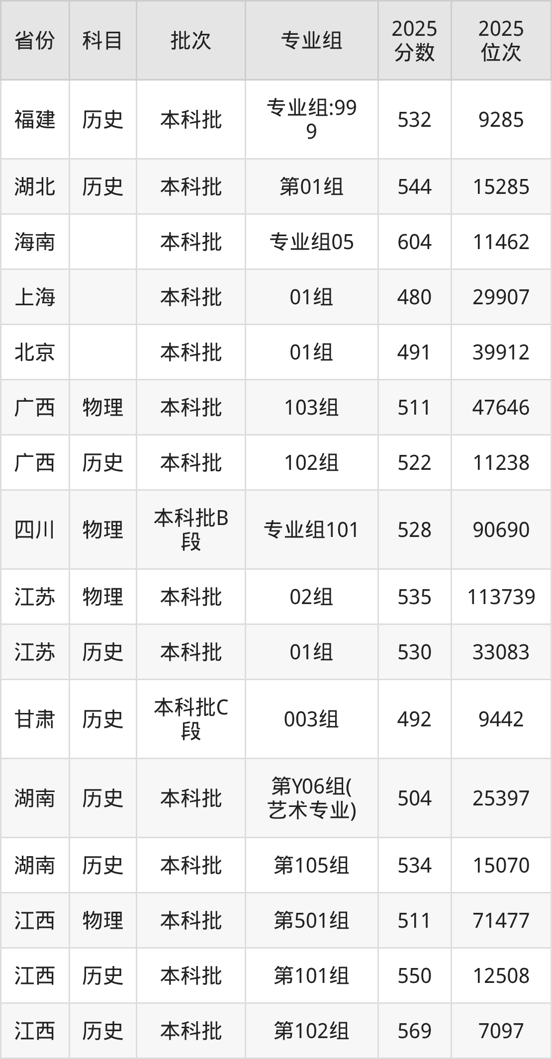 2025年在本科历史类进行招生,各专业组分数线详情如下: