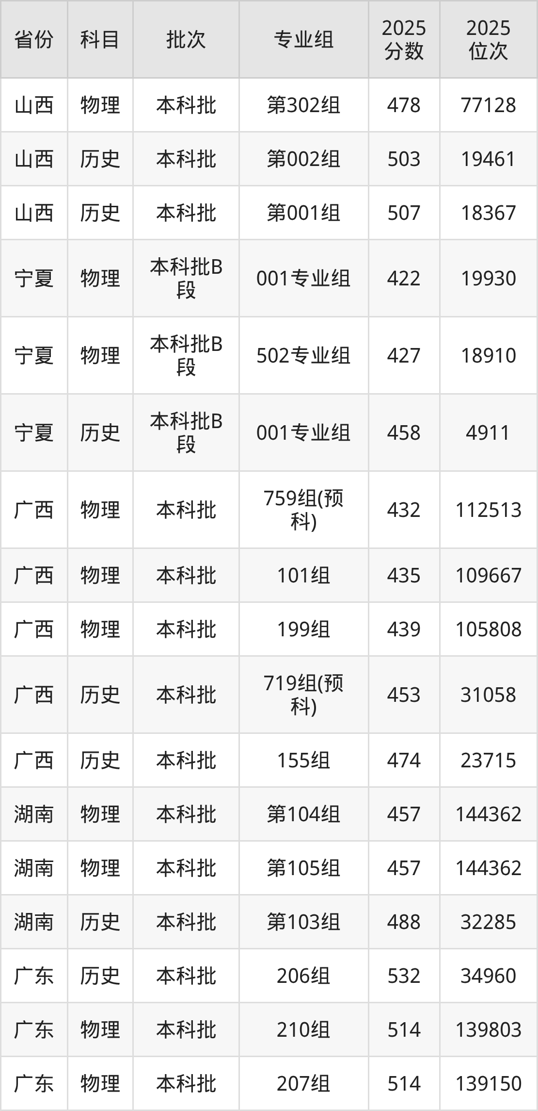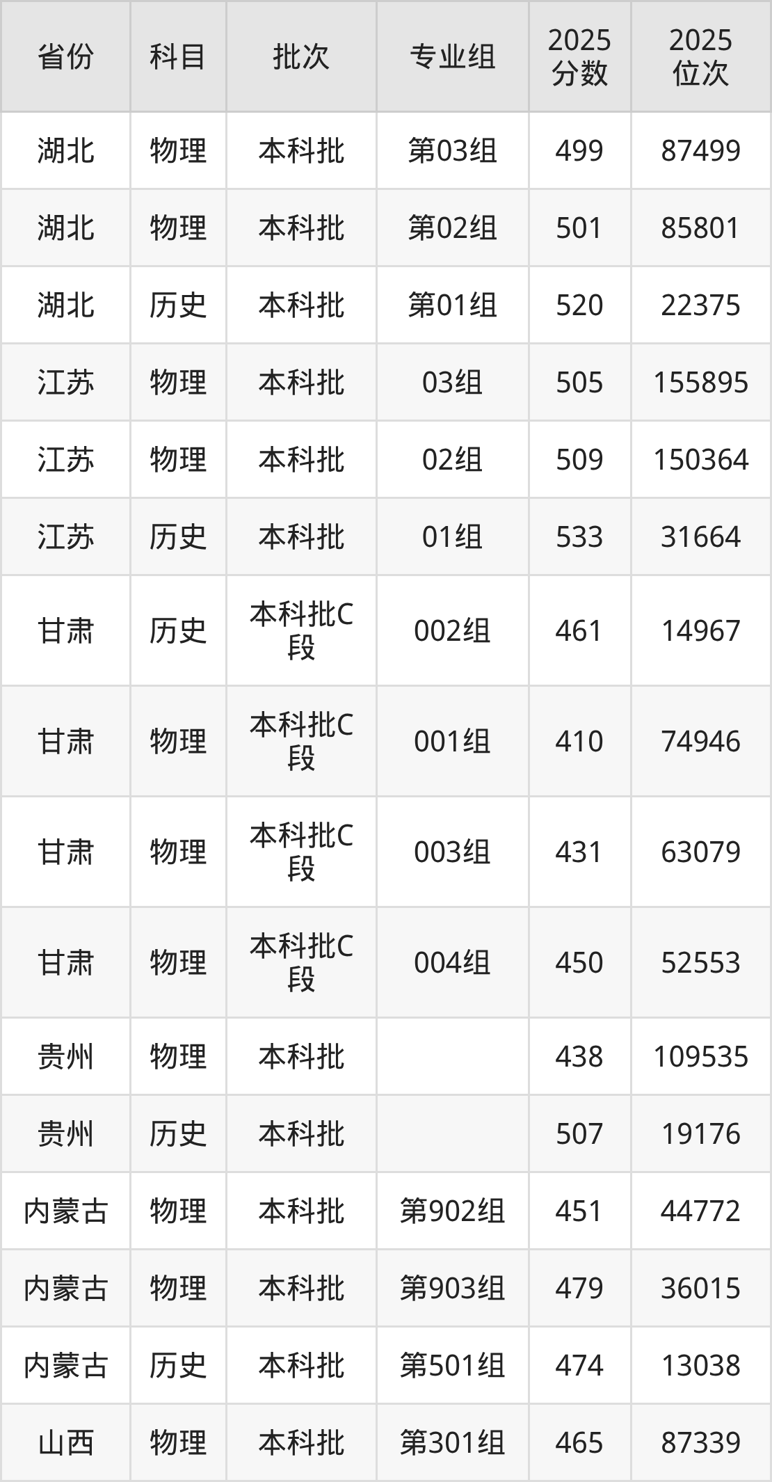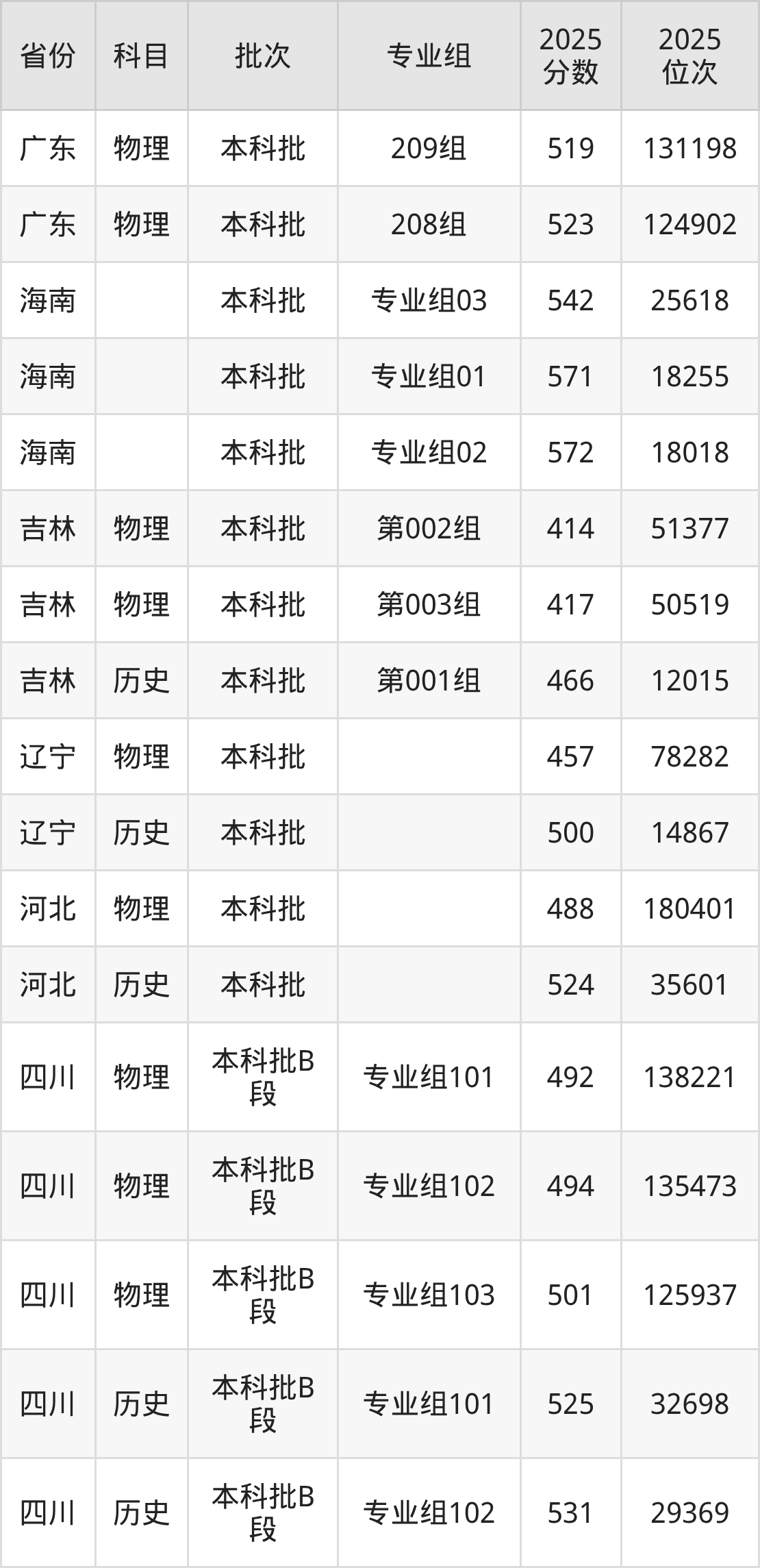 2025年投档录取最低分为500分,录取最低位次为14867名。