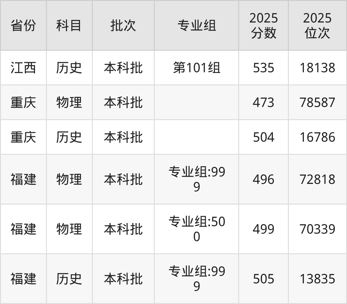 三明学院001组:2025年投档录取最低分为493分,录取最低位次为145423名。