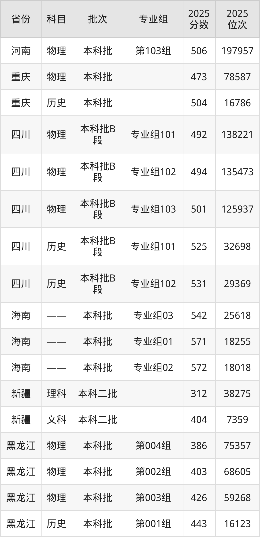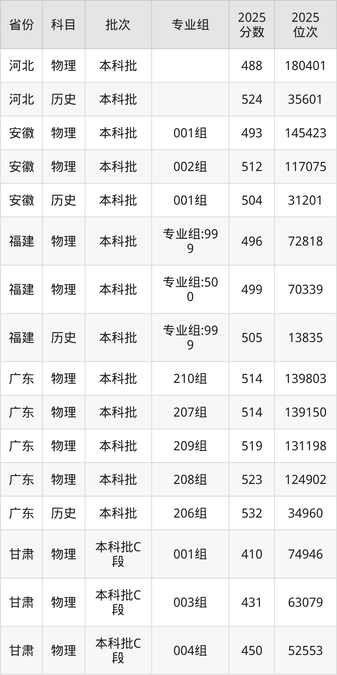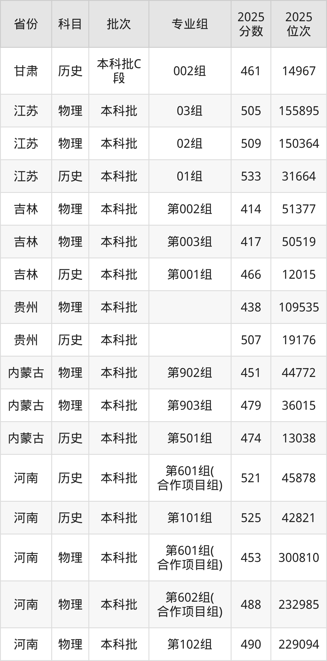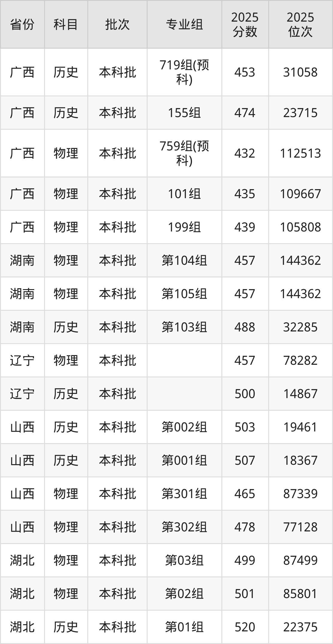 普通类本科物理类最低473分,本科历史类最低504分