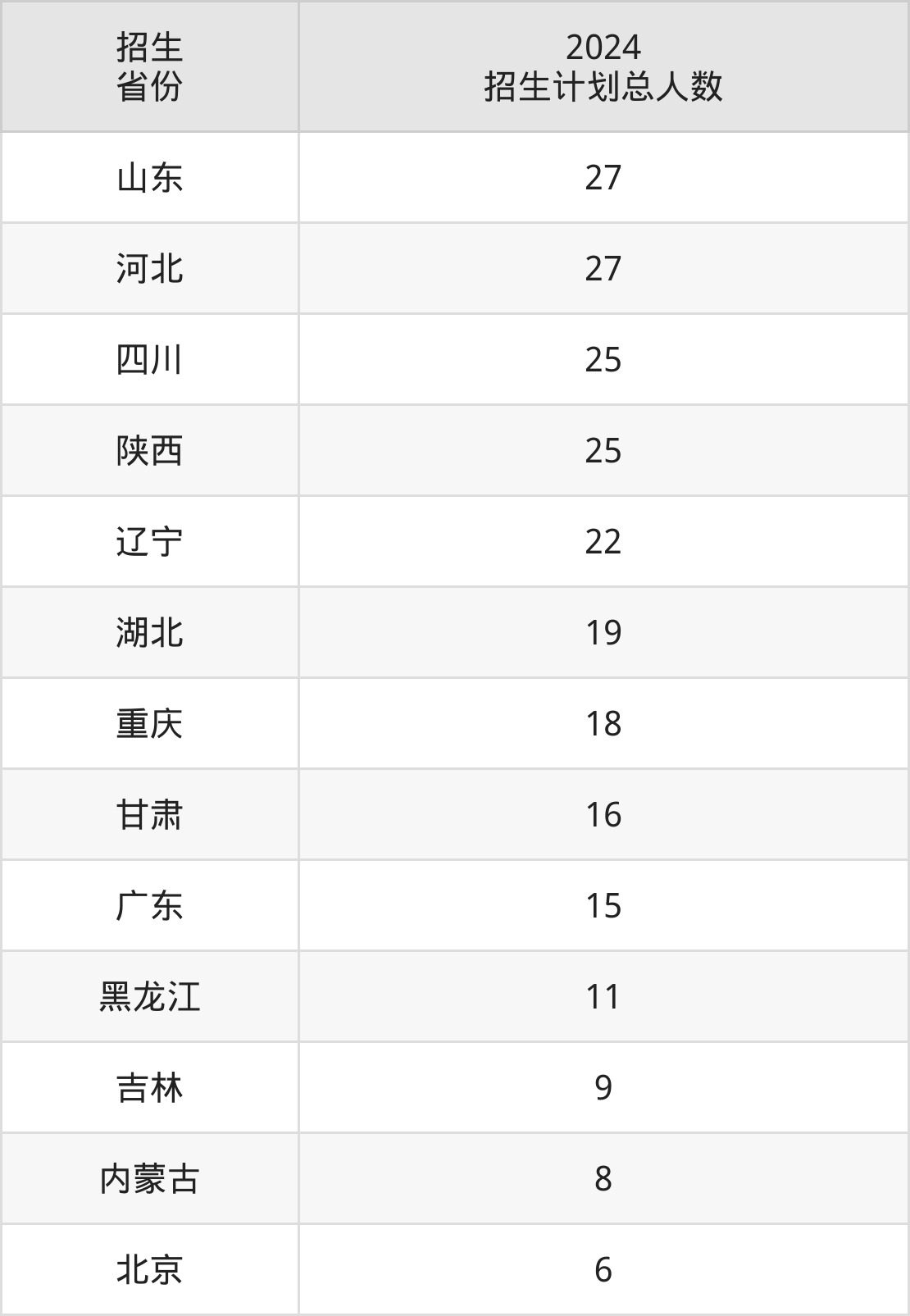 2024年中国人民解放军陆军装甲兵学院面向全国13个省市开展本科招生;招生专业共15个,招生人数共228人。2024年在北京市招生计划总人数是6人,其中,中国人民解放军陆军装甲兵学院在北京市招生人数最多的是作战指挥。中国人民解放军陆军装甲兵学院在各省具体招生人数情况如下表。