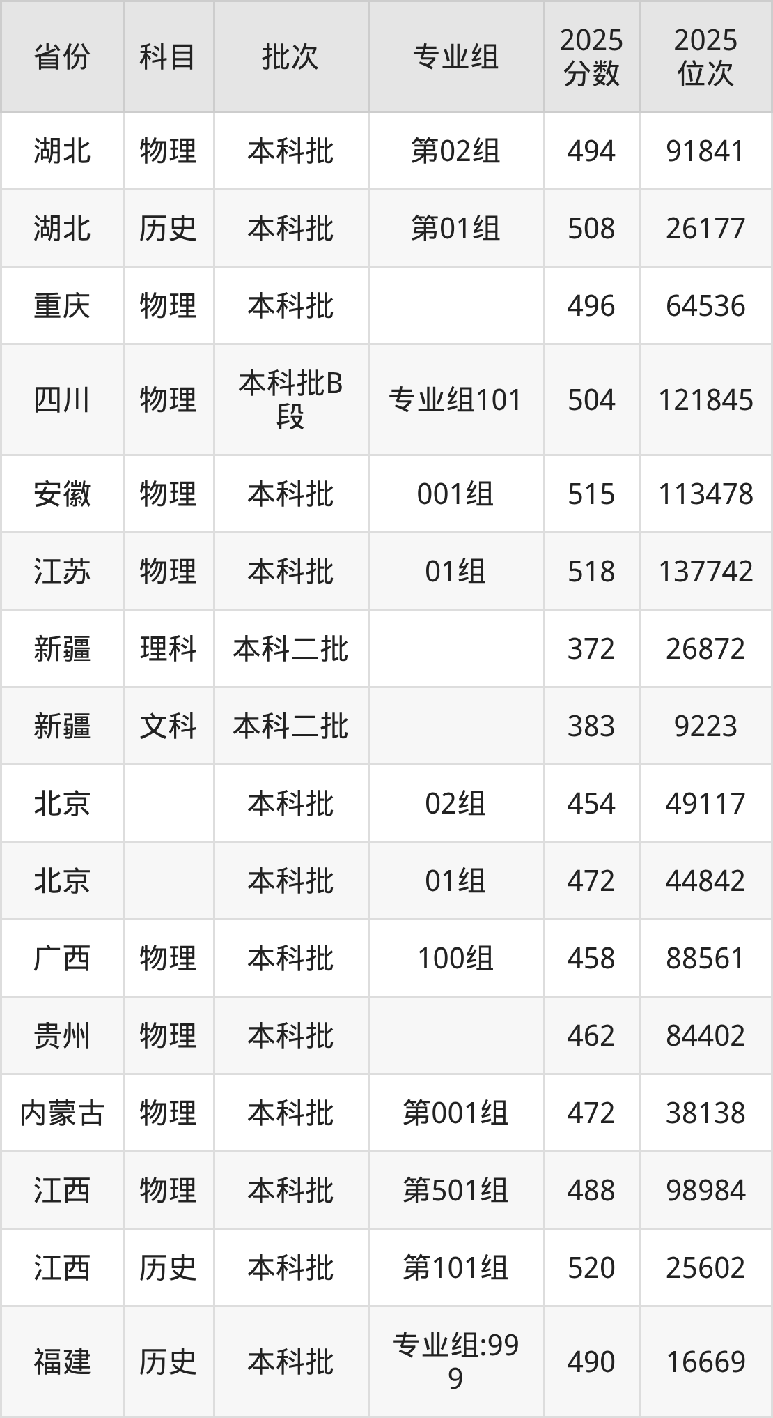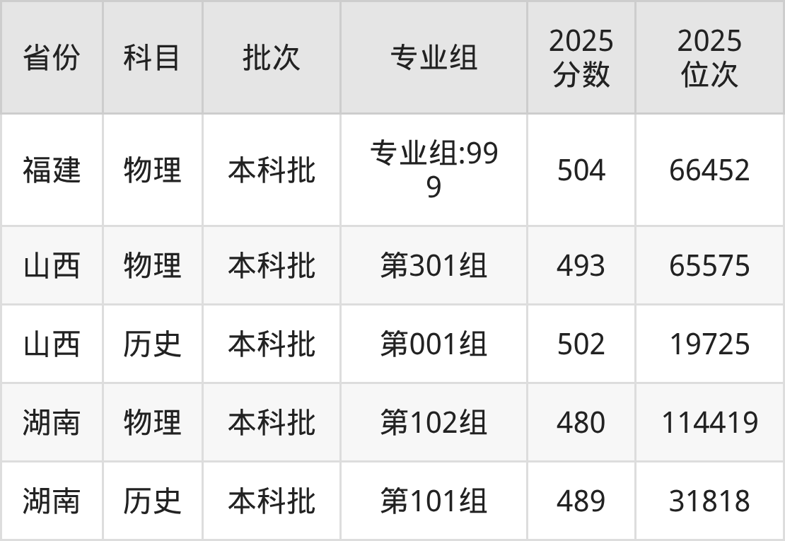 2025年在本科物理类进行招生,各专业组分数线详情如下: