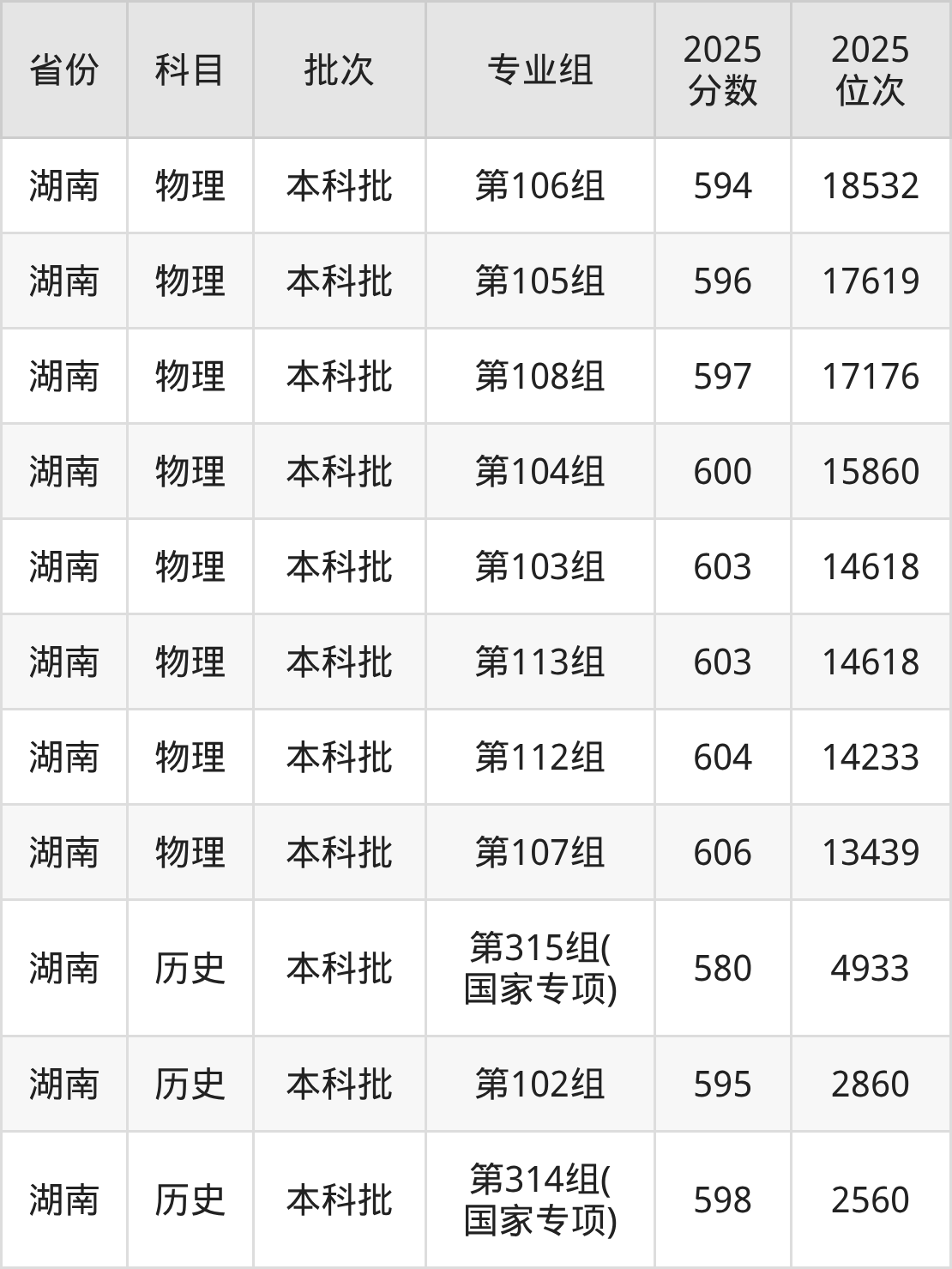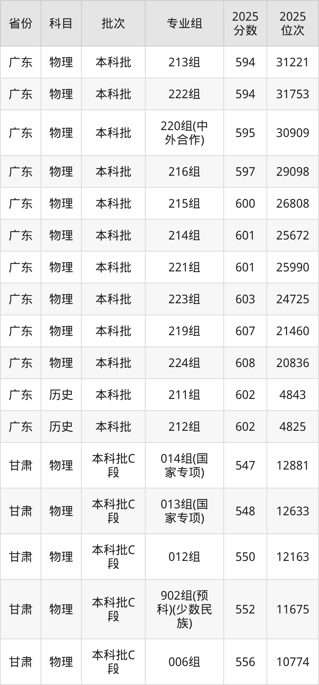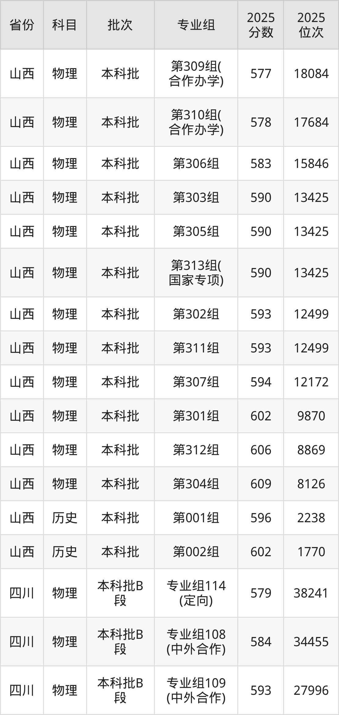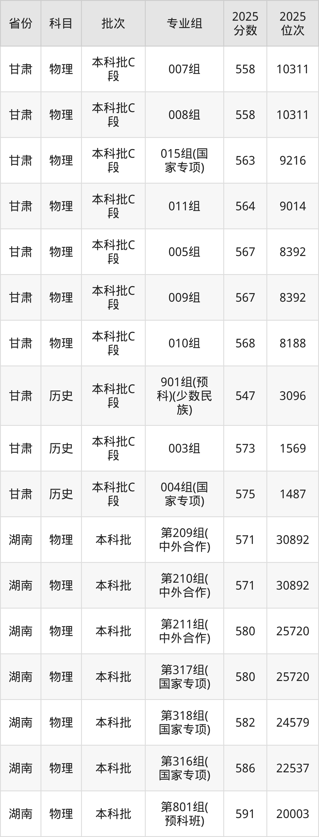 普通类本科物理类最低592分,本科历史类最低601分