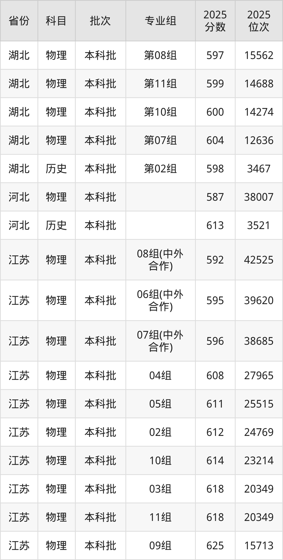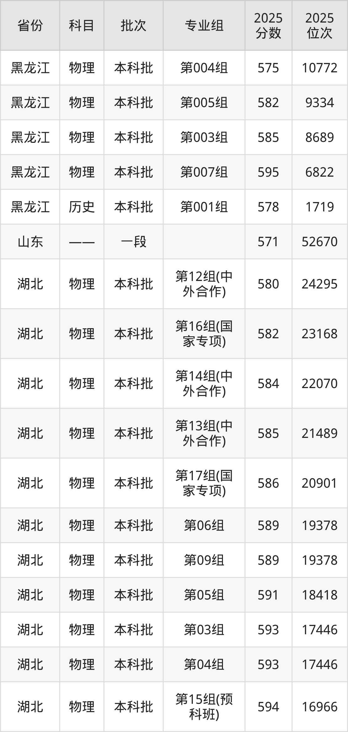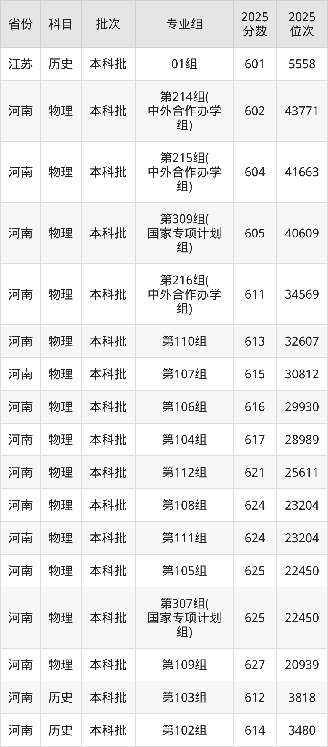 普通类本科物理类最低592分,本科历史类最低601分