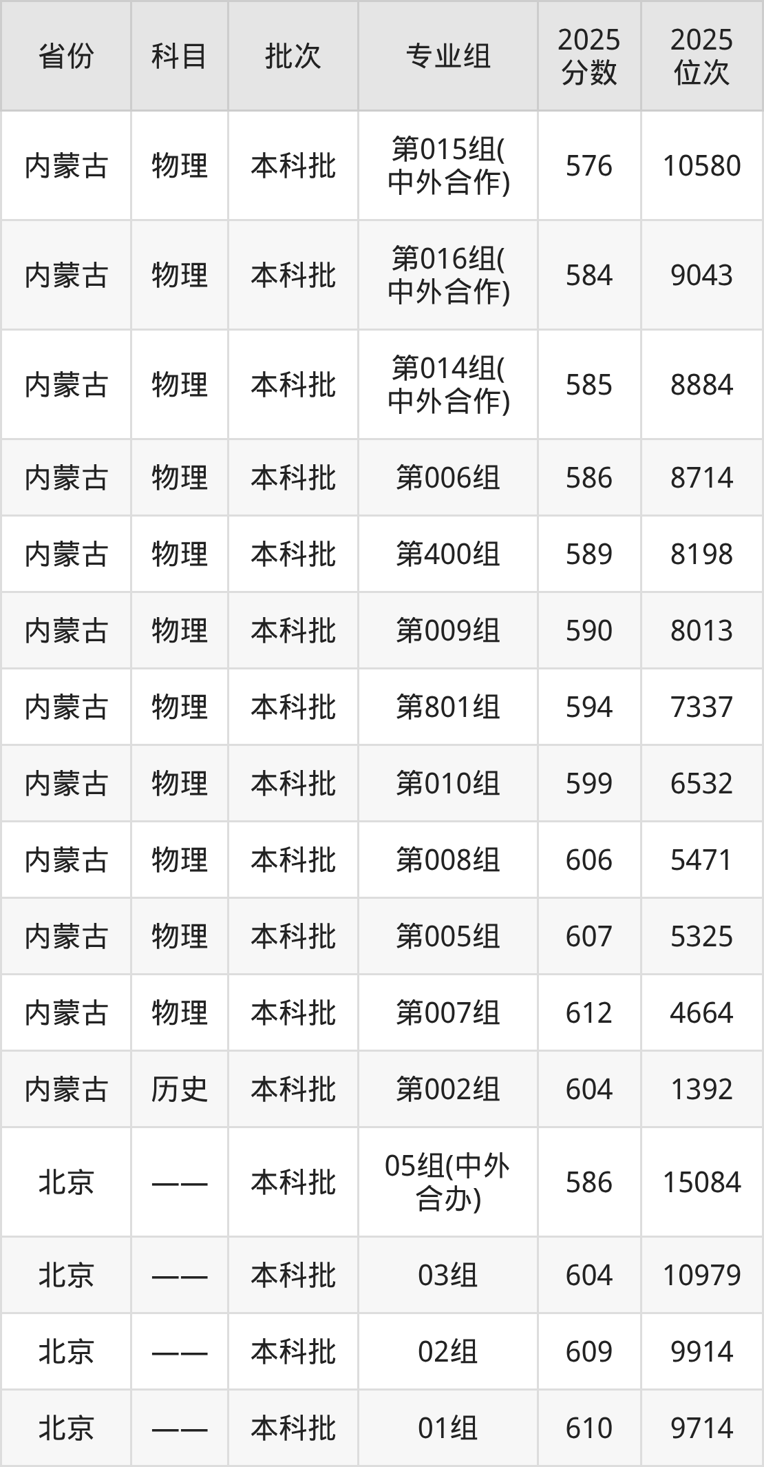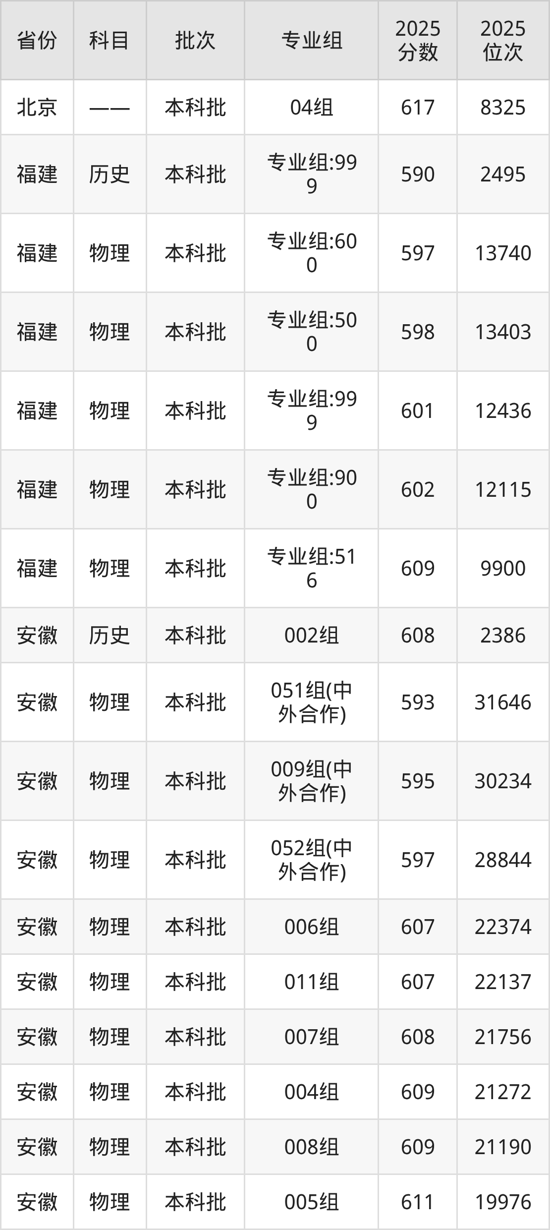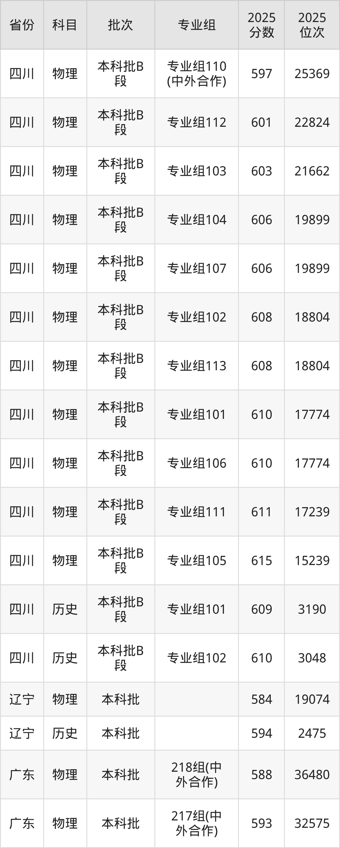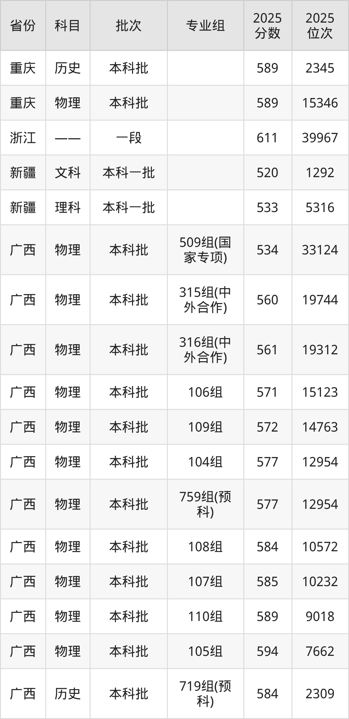 普通类本科物理类最低592分,本科历史类最低601分