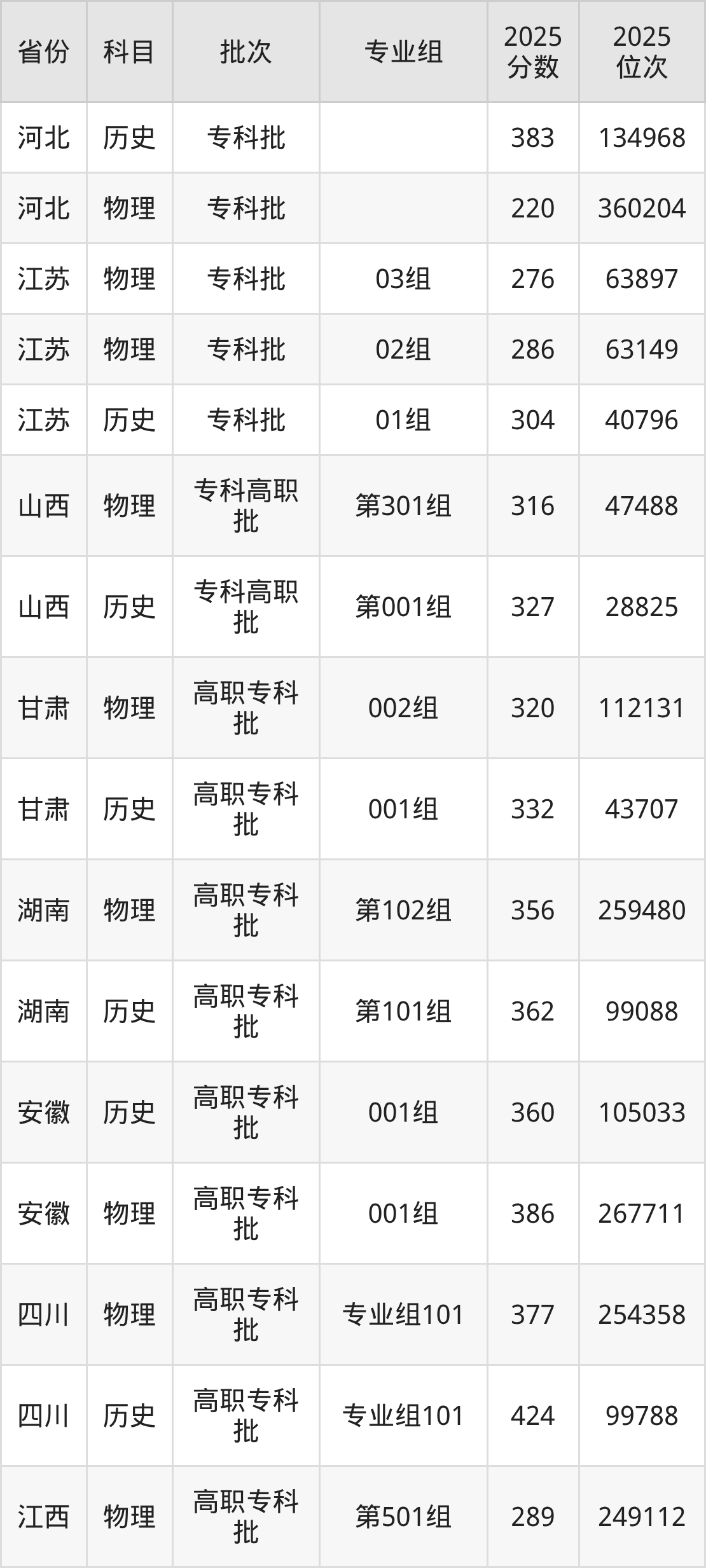 下面是2025年赣州职业技术学院全国录取分数线一览表,请查阅。
