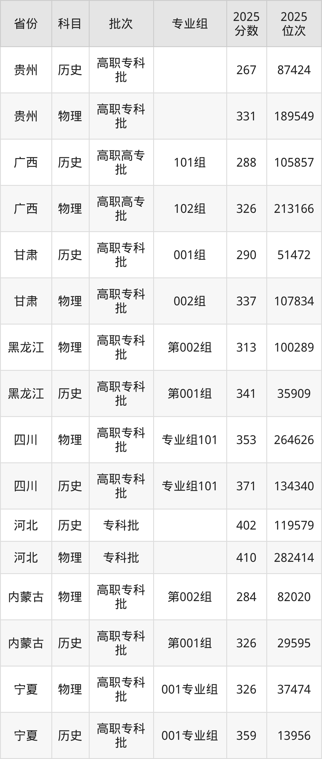 下面是2025年榆林职业技术学院全国录取分数线一览表,请查阅。