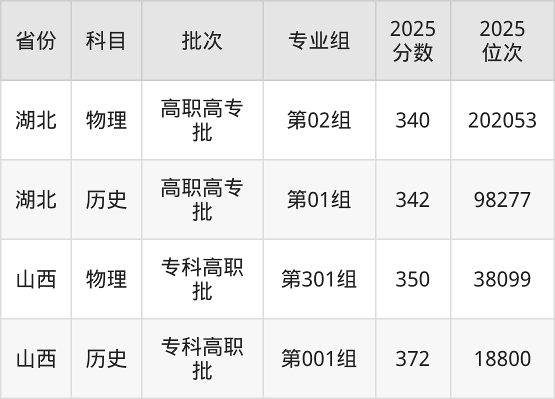 榆林职业技术学院第02组:2025年投档录取最低分为340分,录取最低位次为202053名。