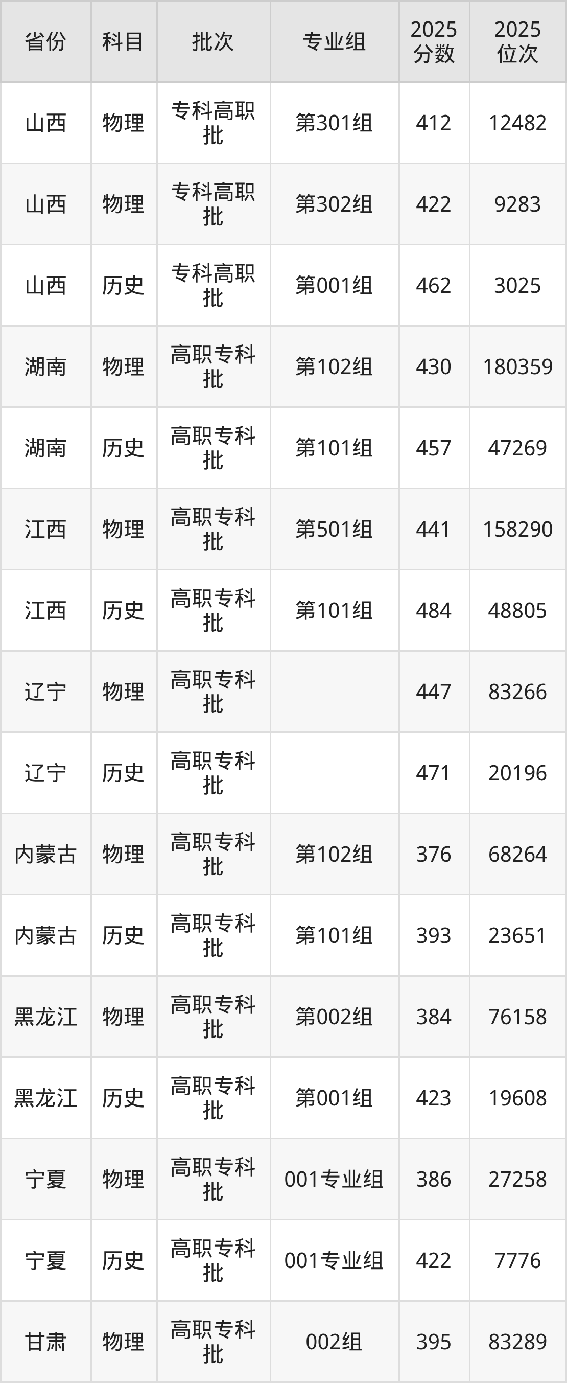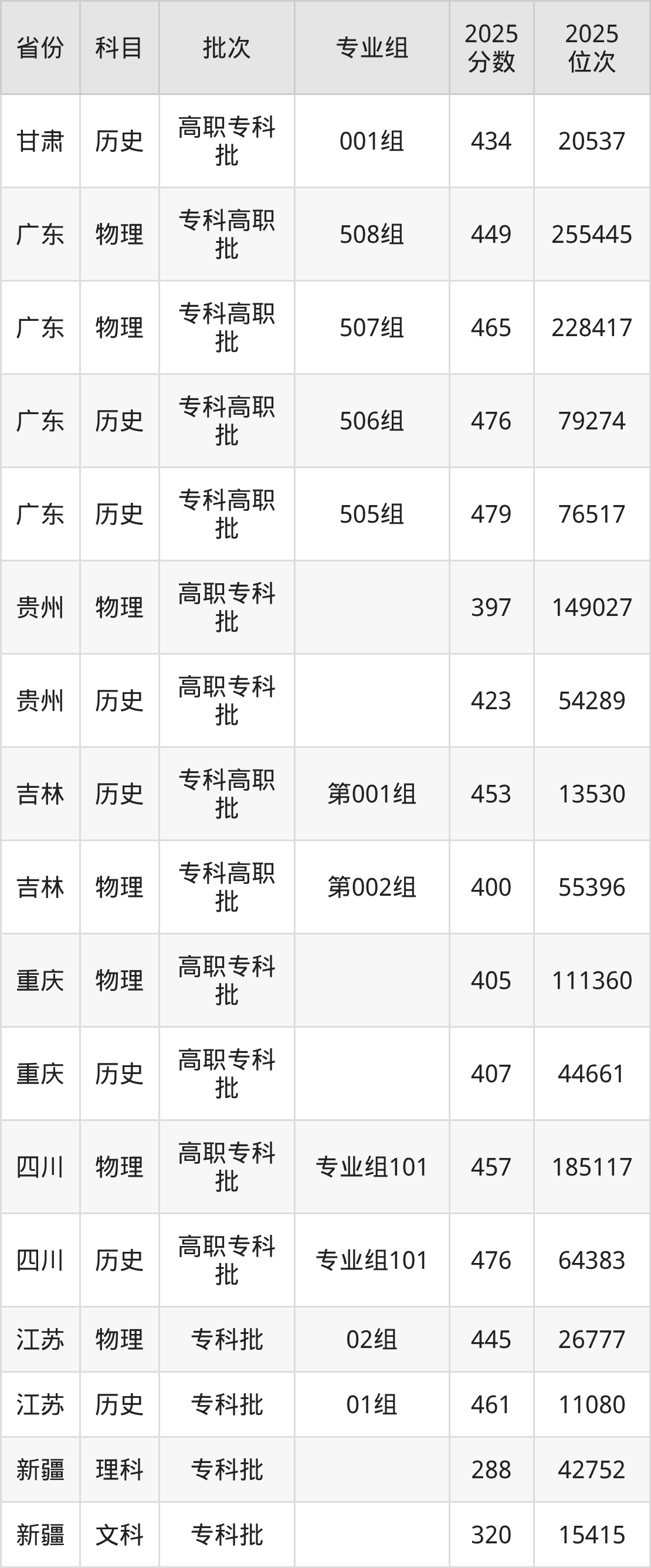 下面是2025年重庆电力高等专科学校全国录取分数线一览表,请查阅。