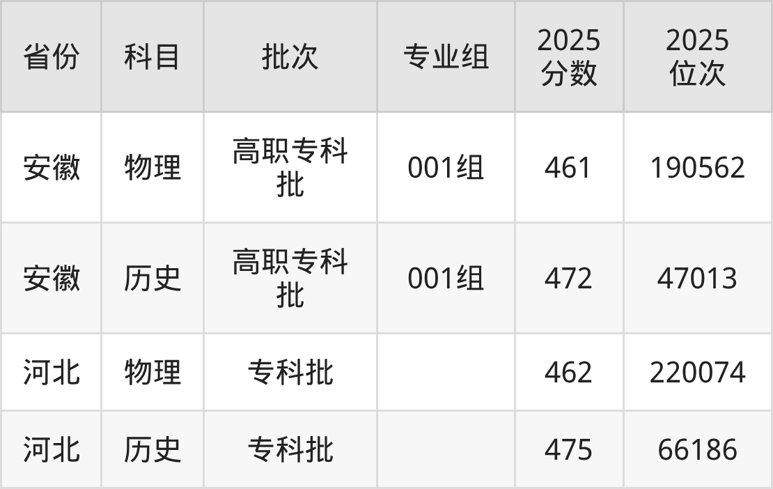 专科历史类投档录取最低475分,专科物理类投档录取最低462分