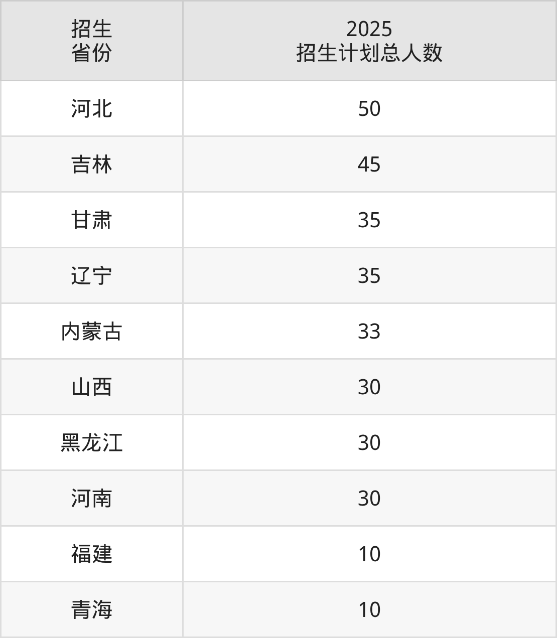 2025年山东药品食品职业学院面向全国10个省市开展专科招生;招生专业共18个,招生人数共308人。山东药品食品职业学院在各省具体招生人数情况如下表。