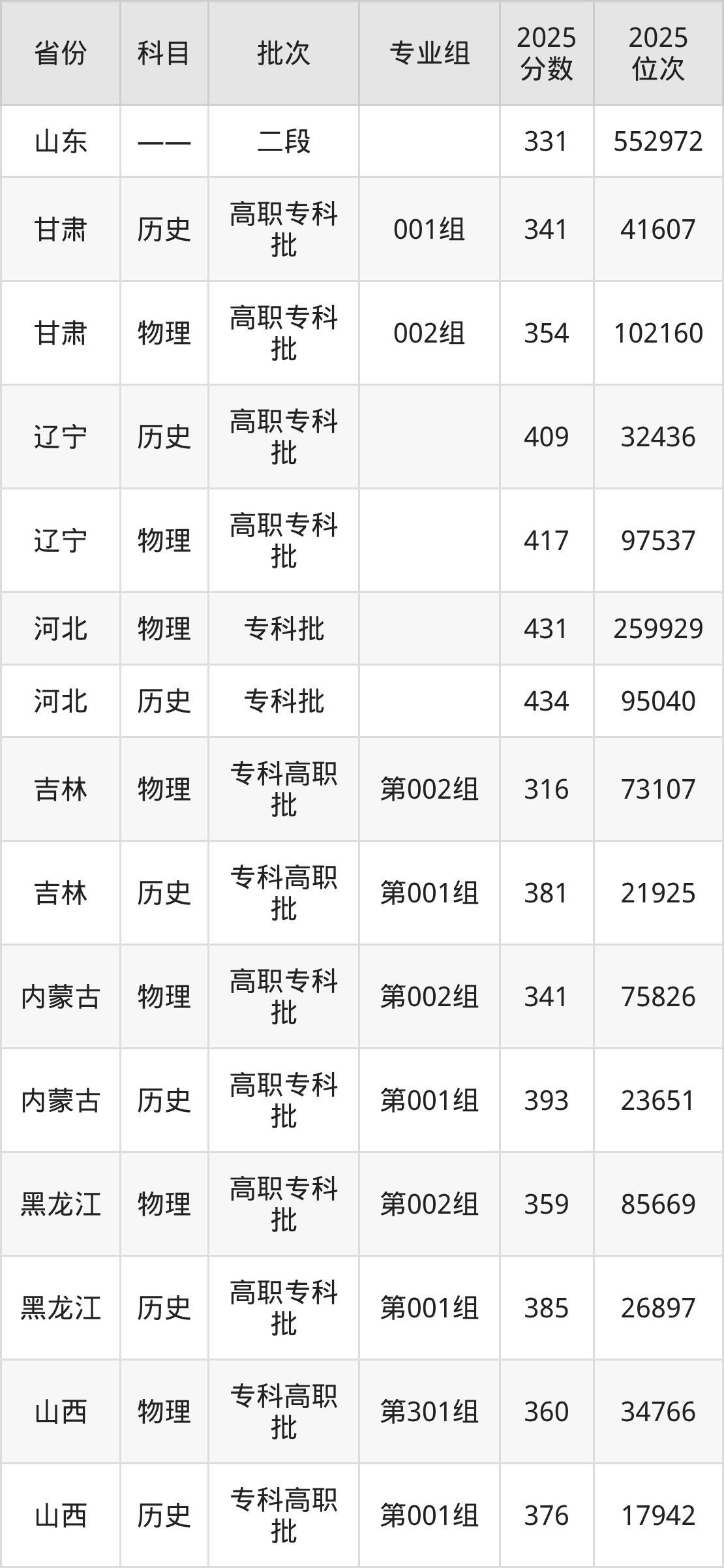 下面是2025年山东药品食品职业学院全国录取分数线一览表,请查阅。