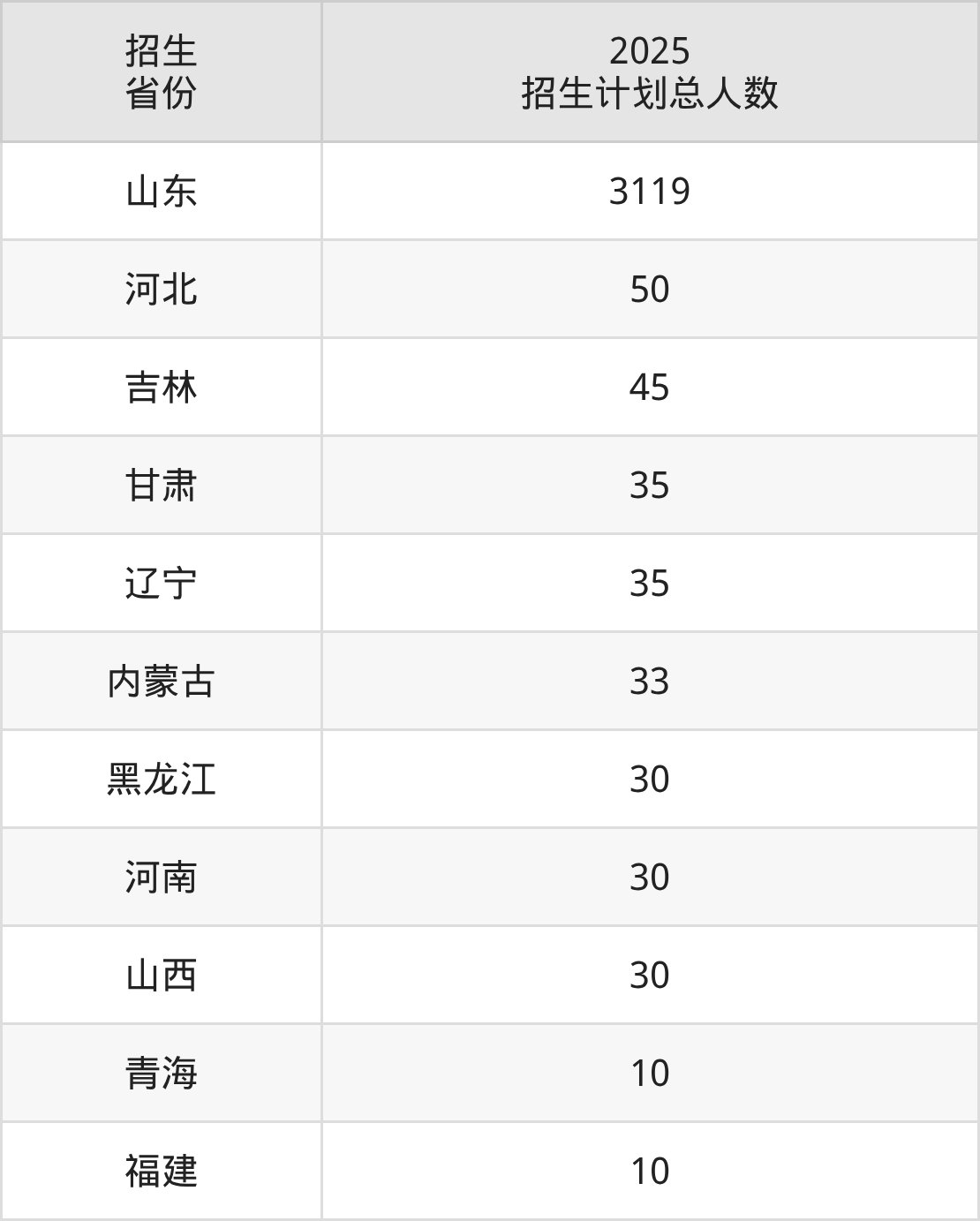 2025年山东药品食品职业学院面向全国11个省市开展专科招生;招生专业共35个,招生人数共3427人。2025年在山东省招生计划总人数是3119人,其中,山东药品食品职业学院在山东省招生人数最多的是中药学。山东药品食品职业学院在各省具体招生人数情况如下表。