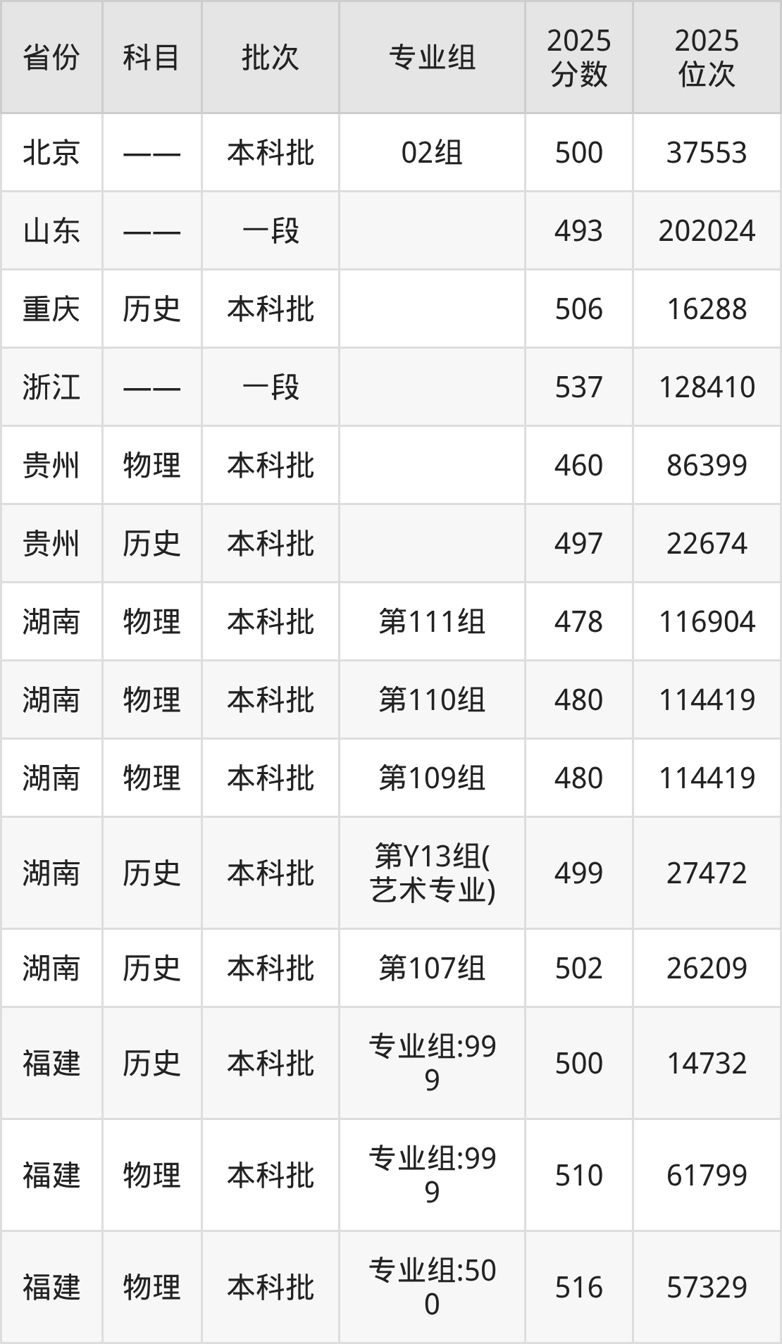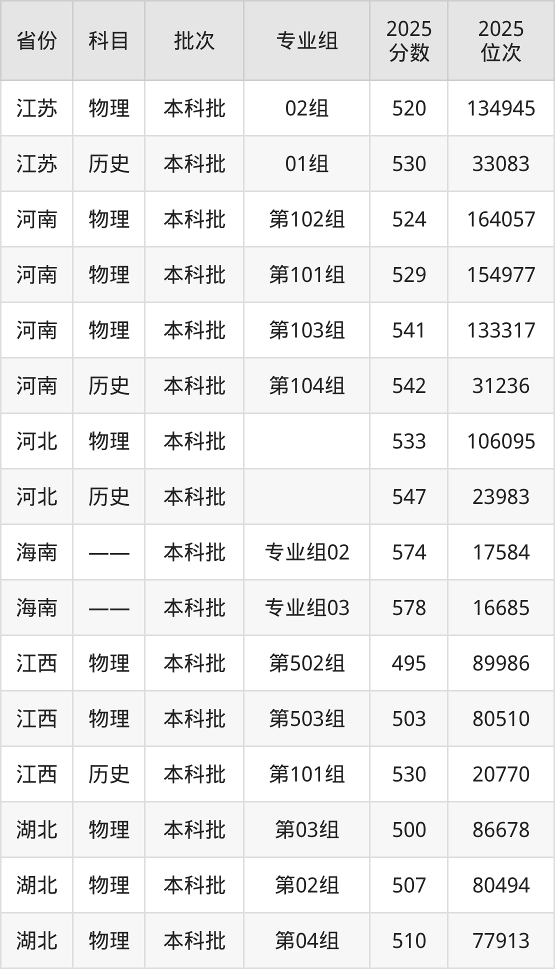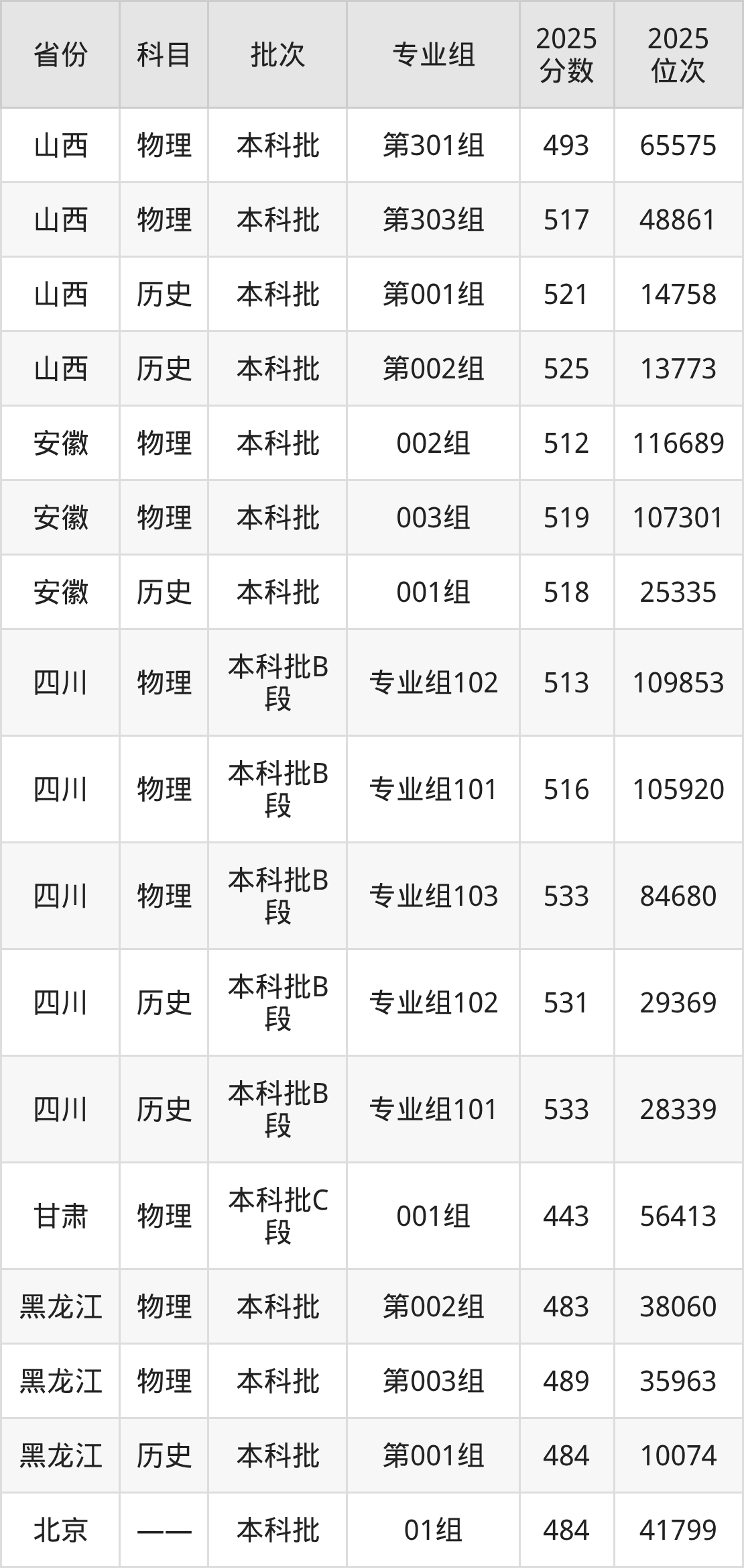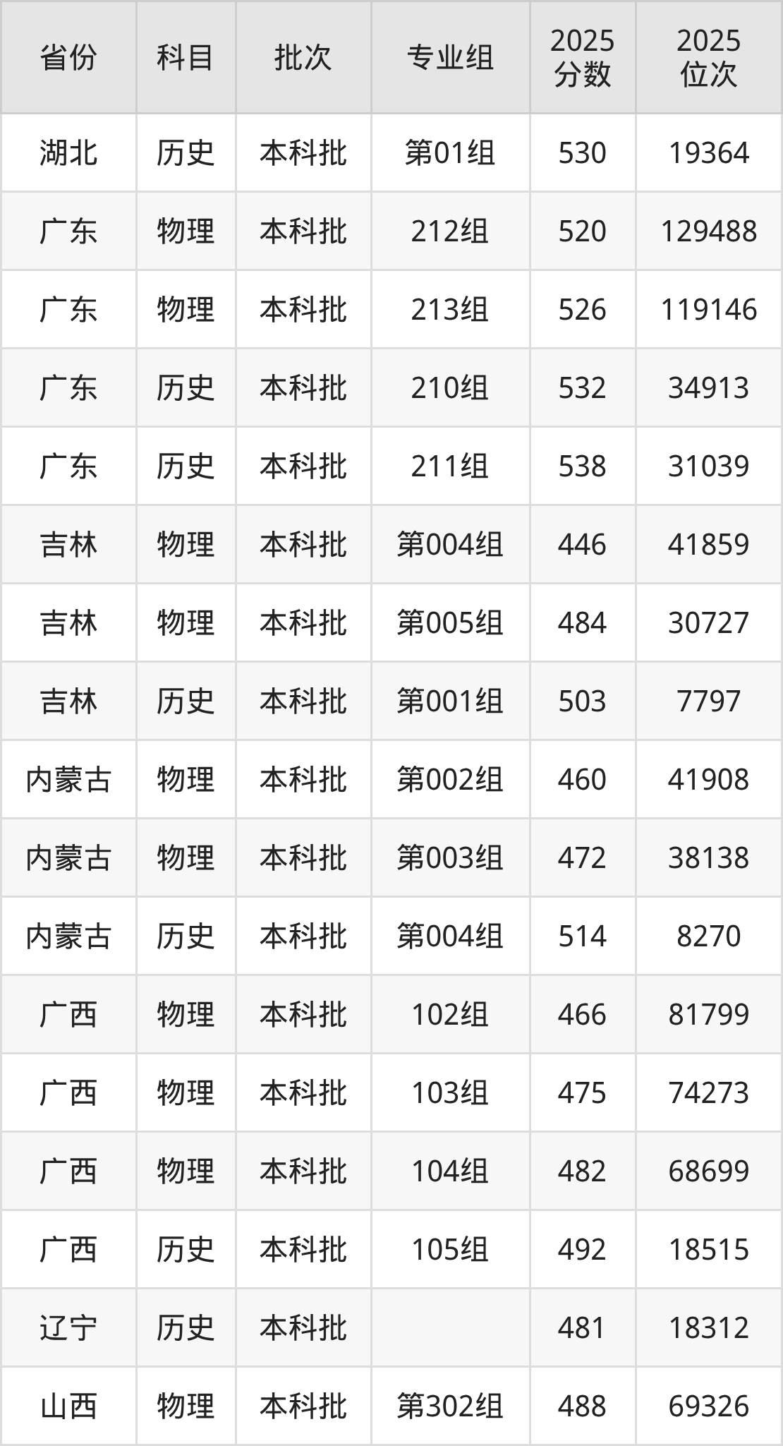 2025年在本科物理类进行招生,各专业组分数线详情如下: