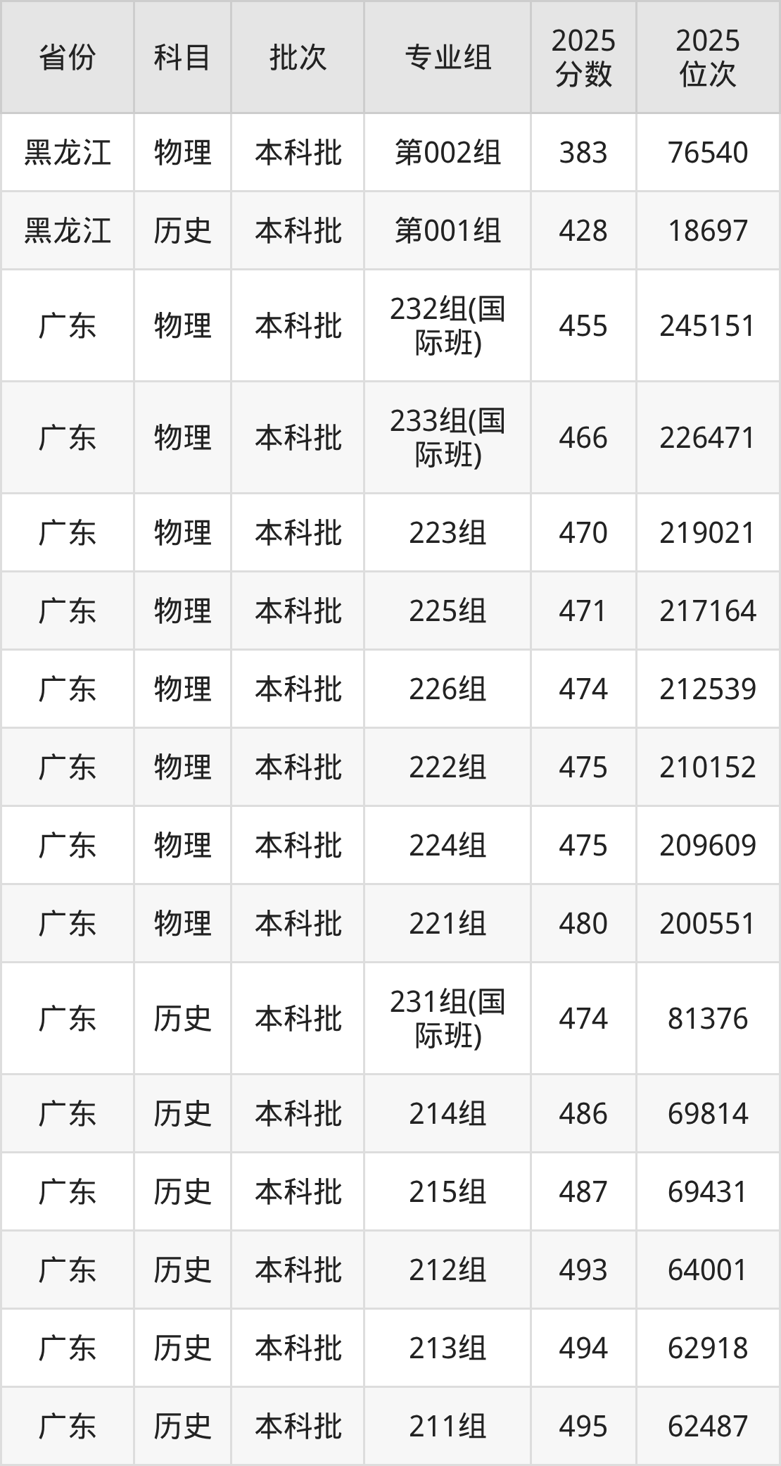 广东外语外贸大学南国商学院第002组:2025年投档录取最低分为383分,录取最低位次为76540名。