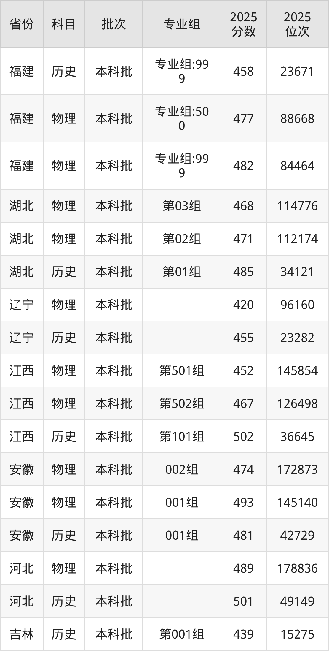 普通类本科物理类最低463分,本科历史类最低488分