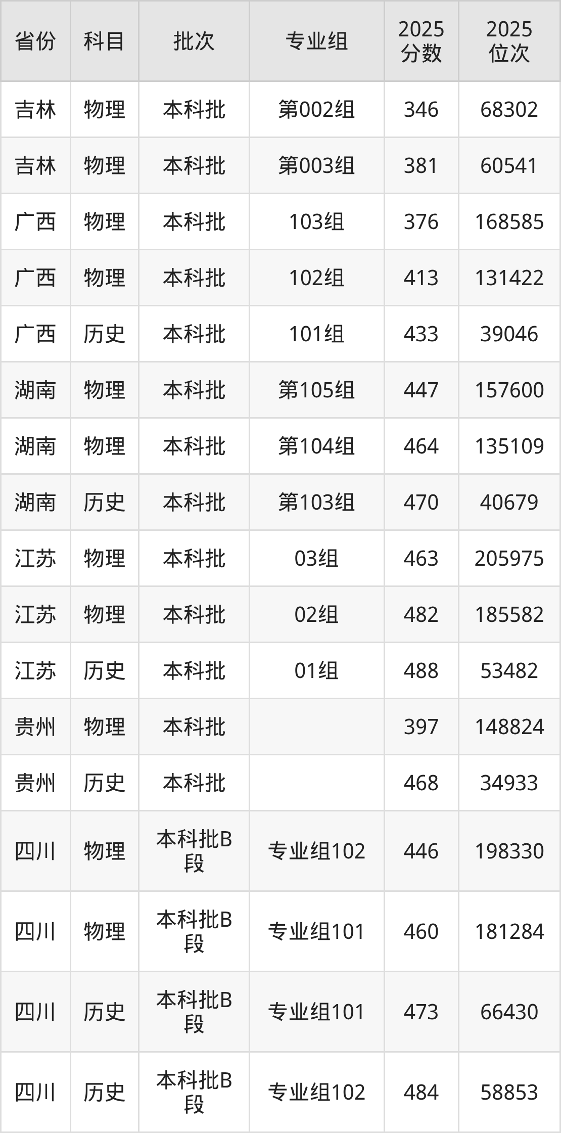 普通类本科物理类最低376分,本科历史类最低433分