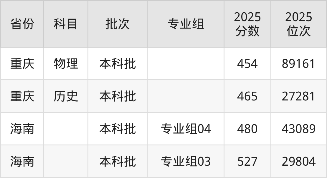 2025年投档录取最低分为465分,录取最低位次为27281名。