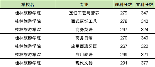 本文本科专业分数线来自2024年桂林旅游学院在浙江的招生录取情况,2024年浙江一段线492分。