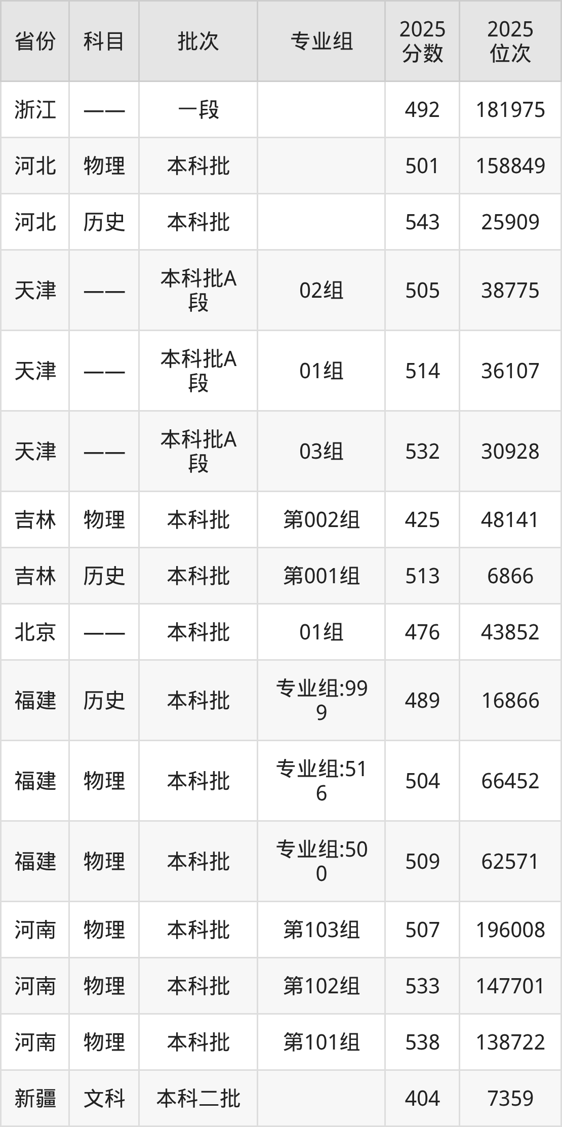 2025年投档录取最低分为494分,录取最低位次为65772名。