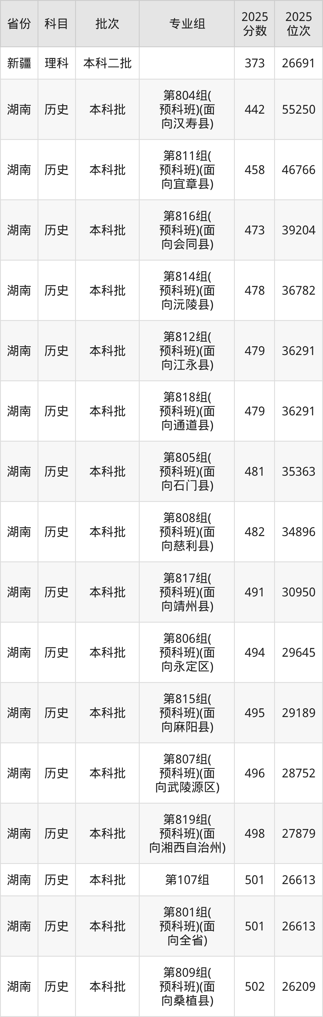 湖南文理学院专业组102(定向):2025年投档录取最低分为535分,录取最低位次为82339名。