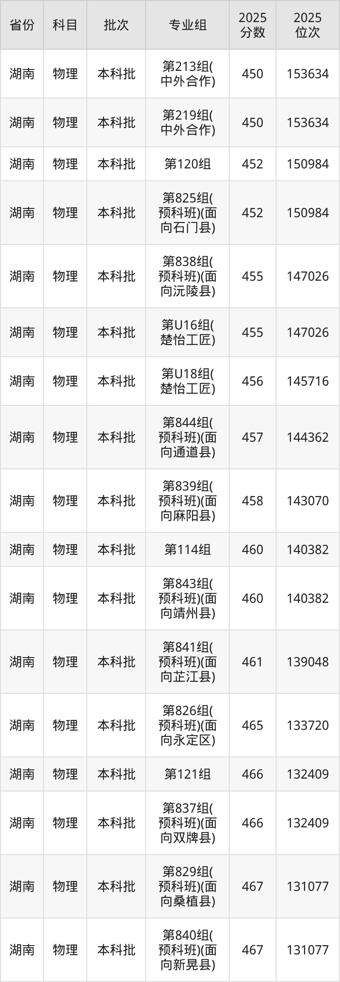 湖南文理学院第01组:2025年投档录取最低分为538分,录取最低位次为16989名。