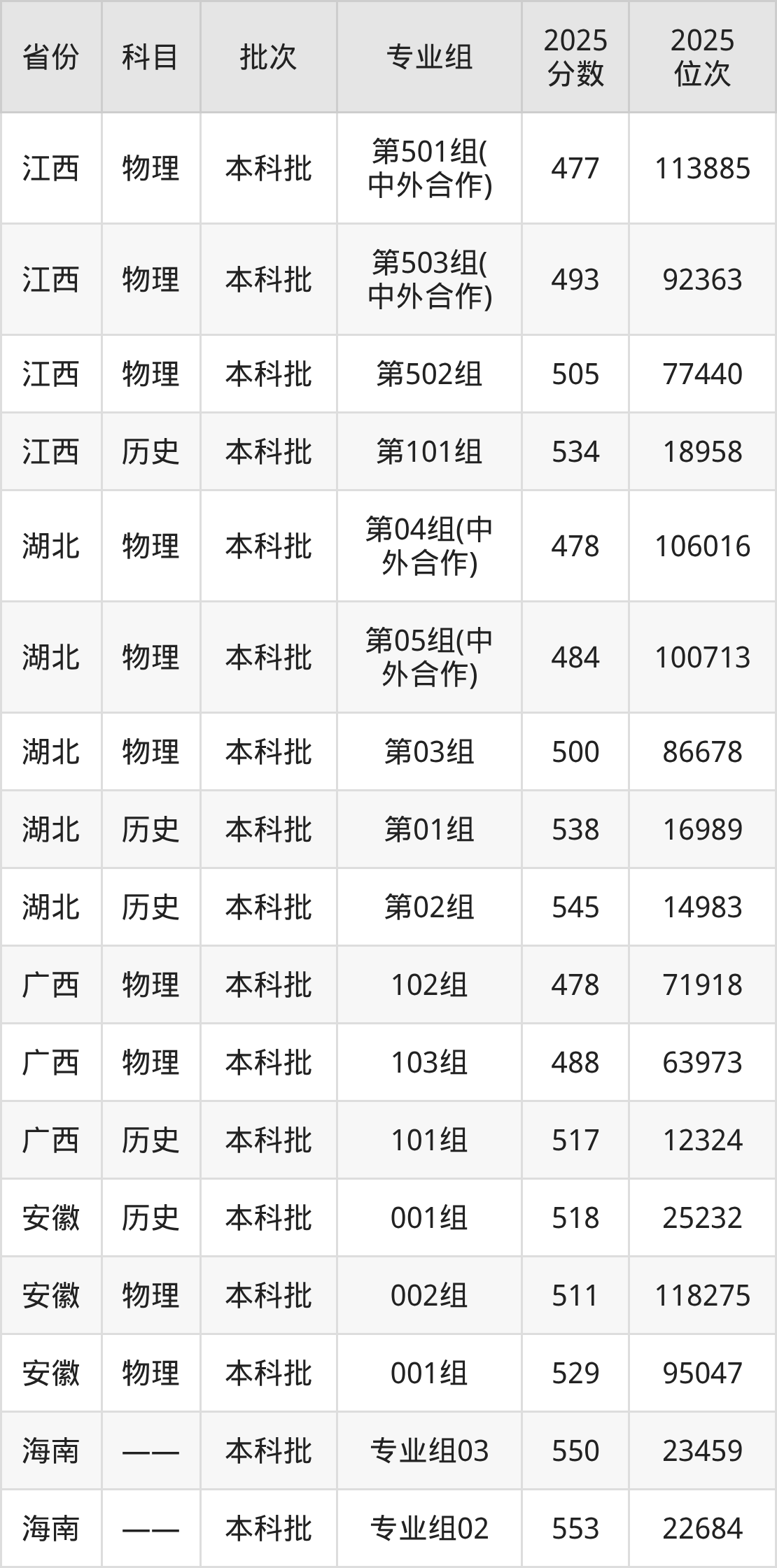 湖南文理学院02组(中外合作办学):2025年投档录取最低分为505分,录取最低位次为155895名。
