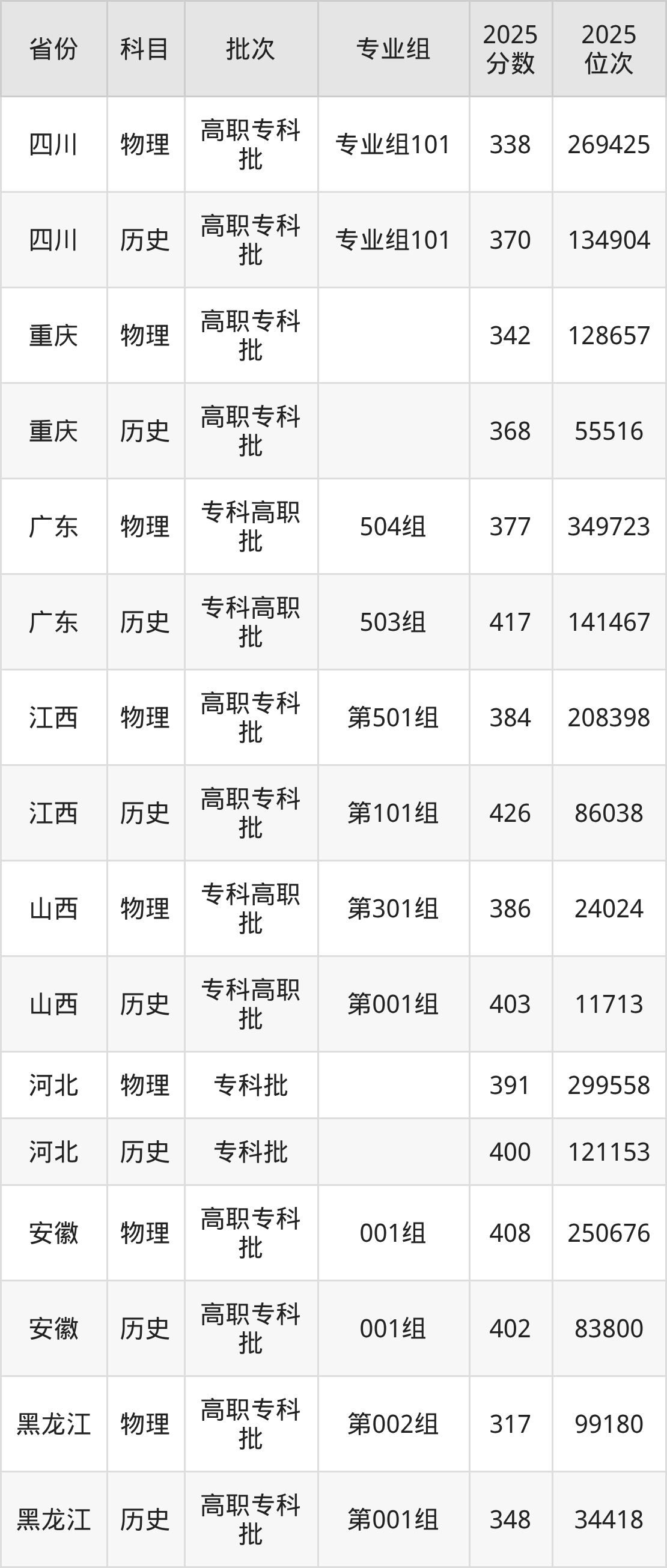 下面是2025年合肥通用职业技术学院全国录取分数线一览表,请查阅。