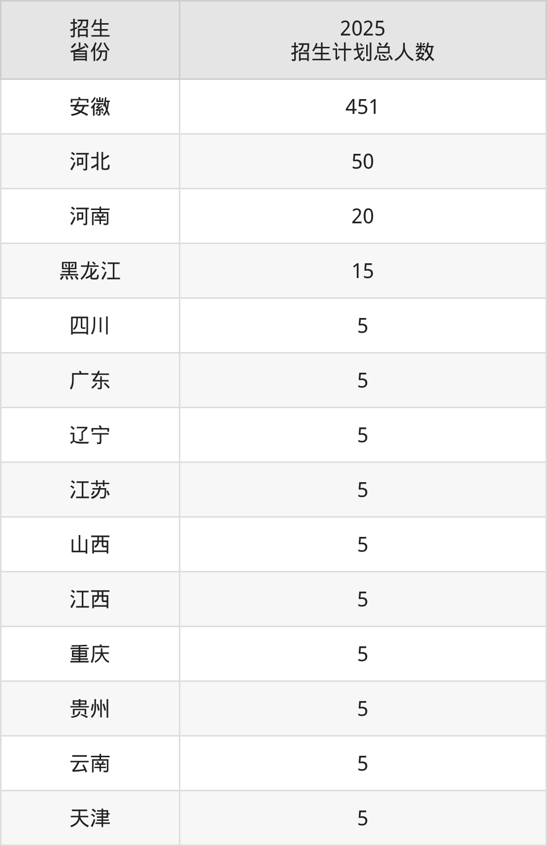 2025年合肥通用职业技术学院面向全国14个省市开展专科招生;招生专业共21个,招生人数共586人。2025年在安徽省招生计划总人数是451人,其中,合肥通用职业技术学院在安徽省招生人数最多的是计量测试与应用技术。合肥通用职业技术学院在各省具体招生人数情况如下表。