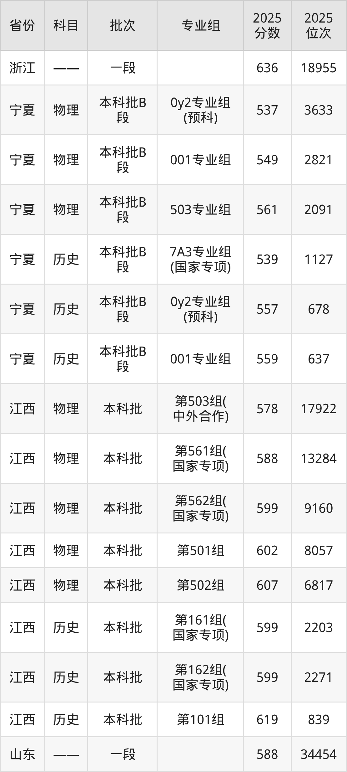 对外经济贸易大学第003组(国家专项计划):2025年投档录取最低分为599分,录取最低位次为1990名。