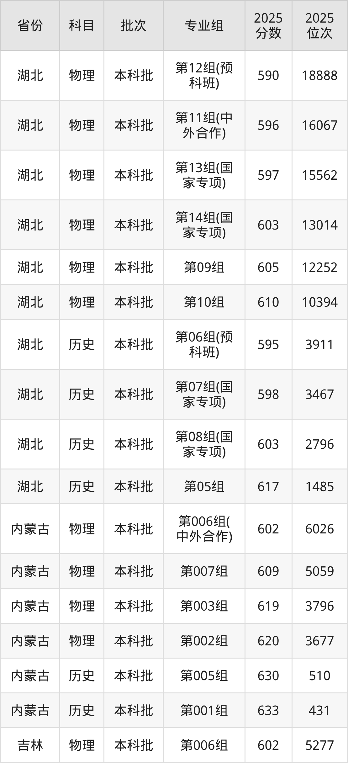 2025年投档录取最低分为562分,录取最低位次为433名。
