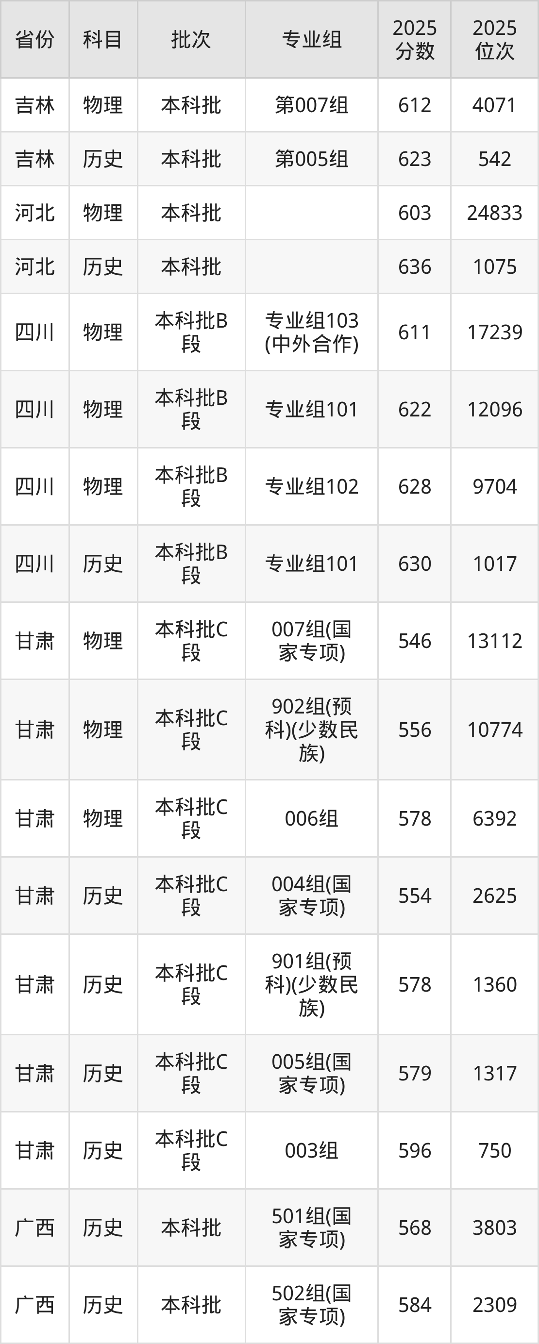 2025年投档录取最低分为623分,录取最低位次为5765名。