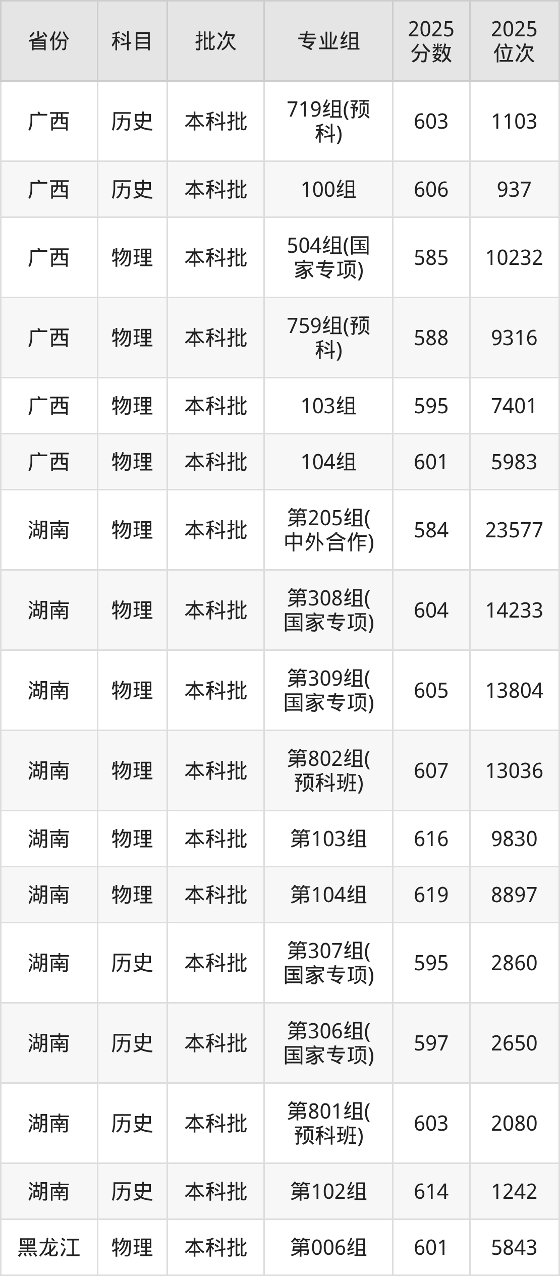 对外经济贸易大学第801组(少数民族预科班):2025年投档录取最低分为603分,录取最低位次为2080名。