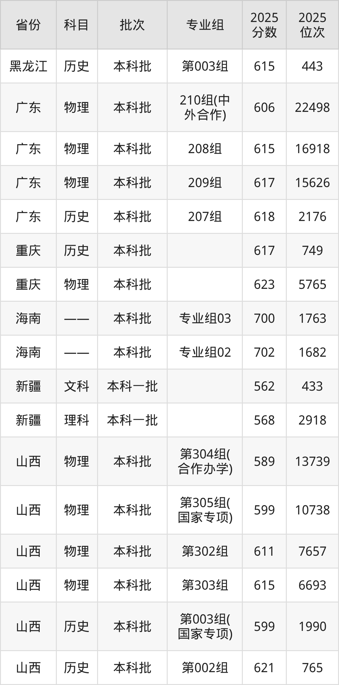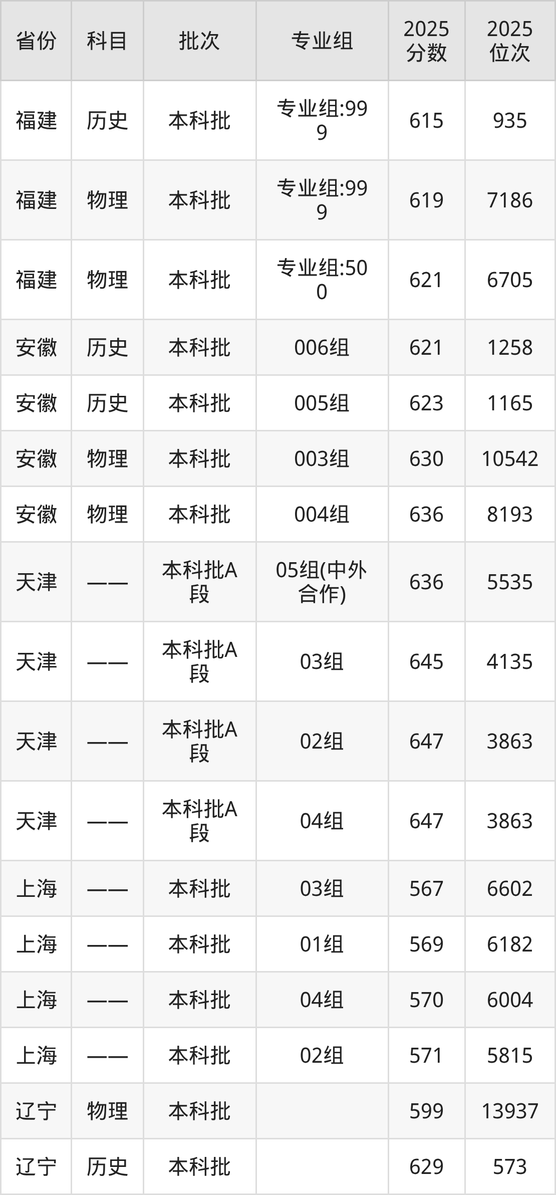 对外经济贸易大学第003组:2025年投档录取最低分为615分,录取最低位次为443名。