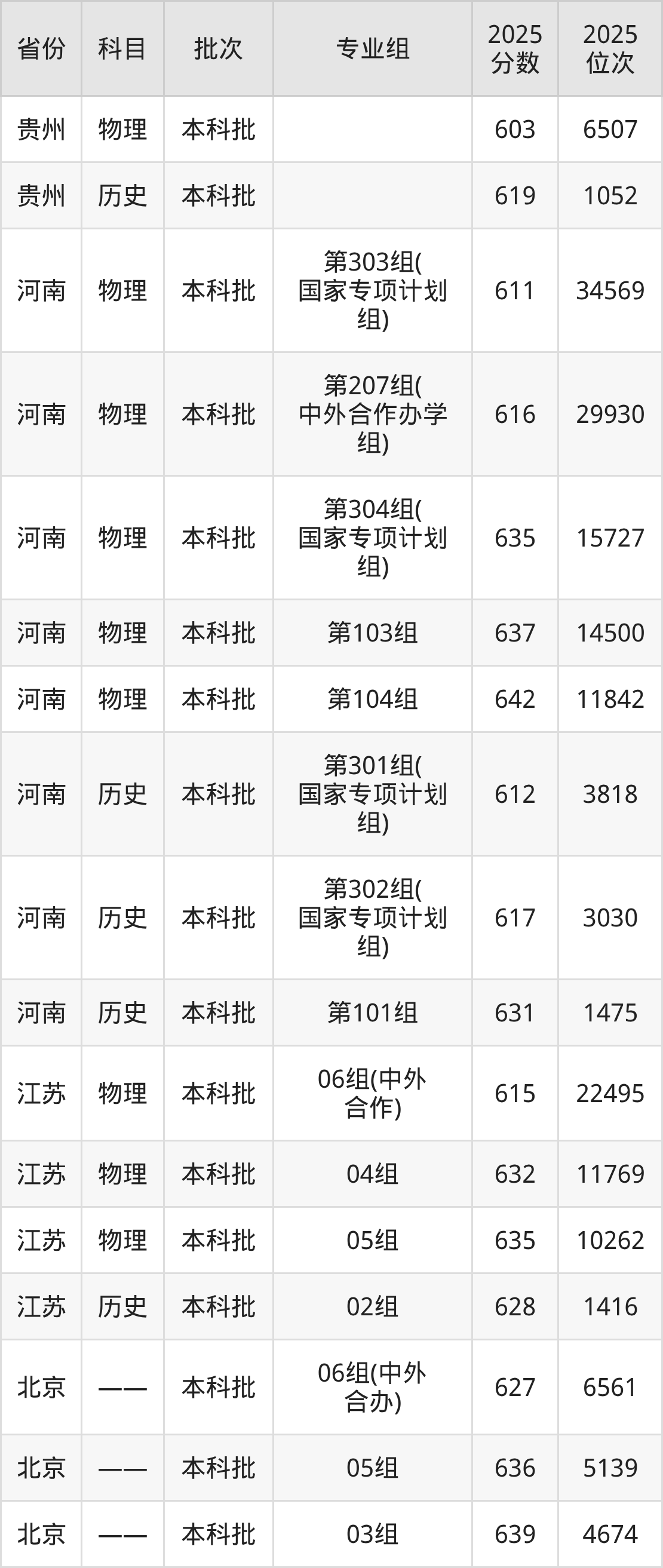 对外经济贸易大学第303组:2025年投档录取最低分为615分,录取最低位次为6693名。