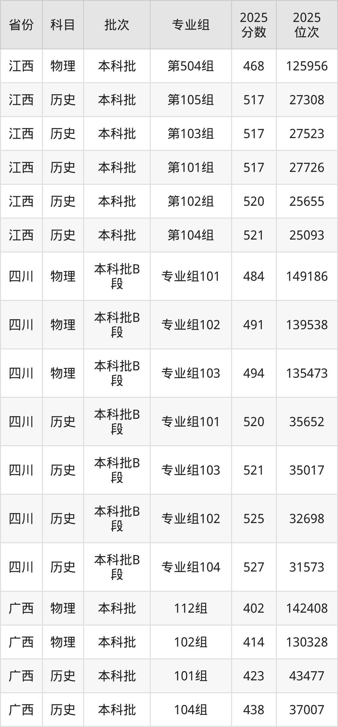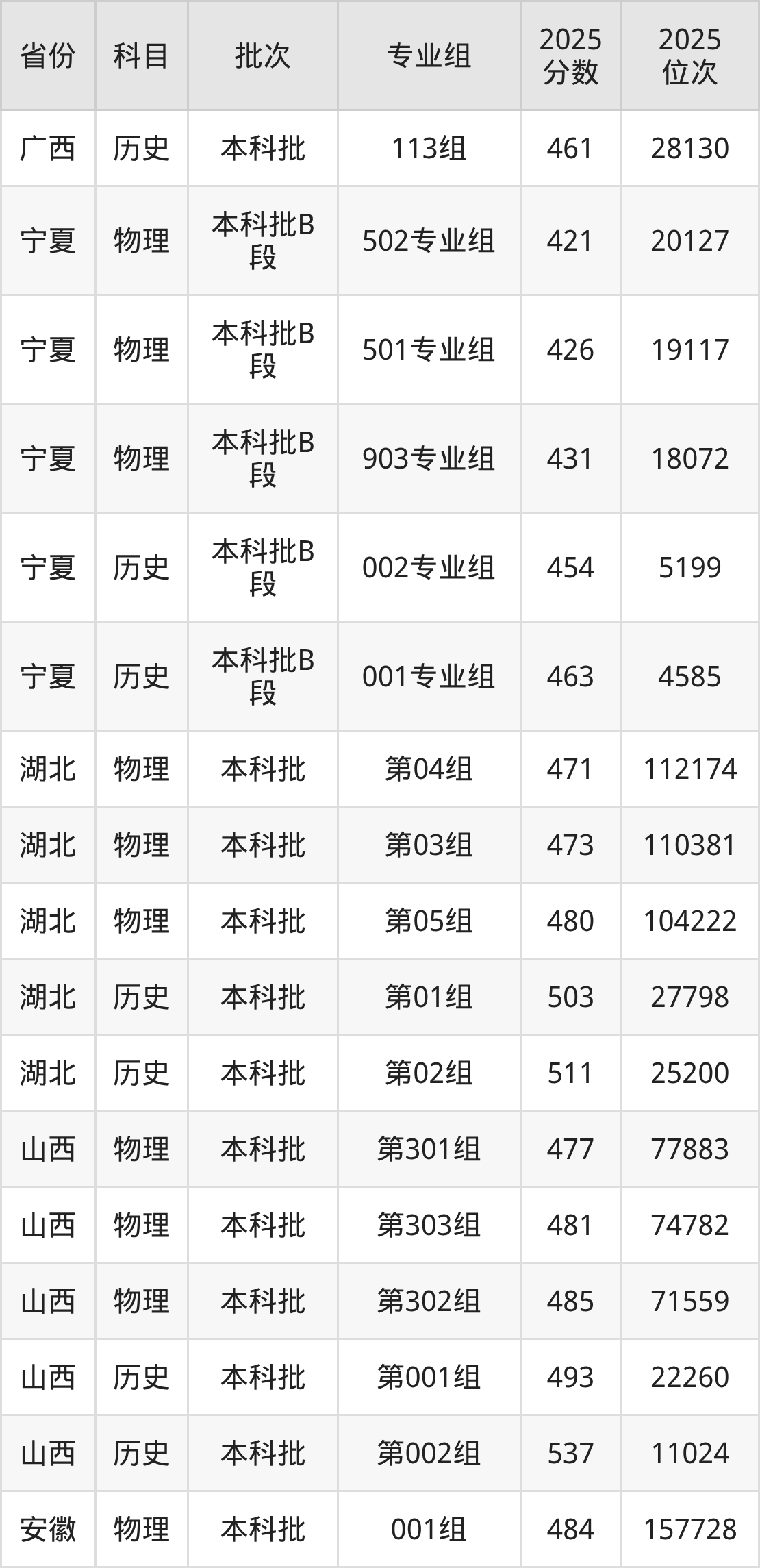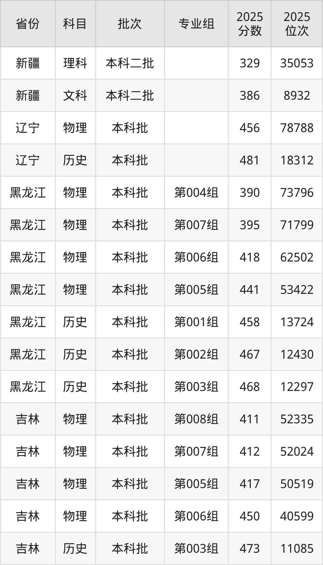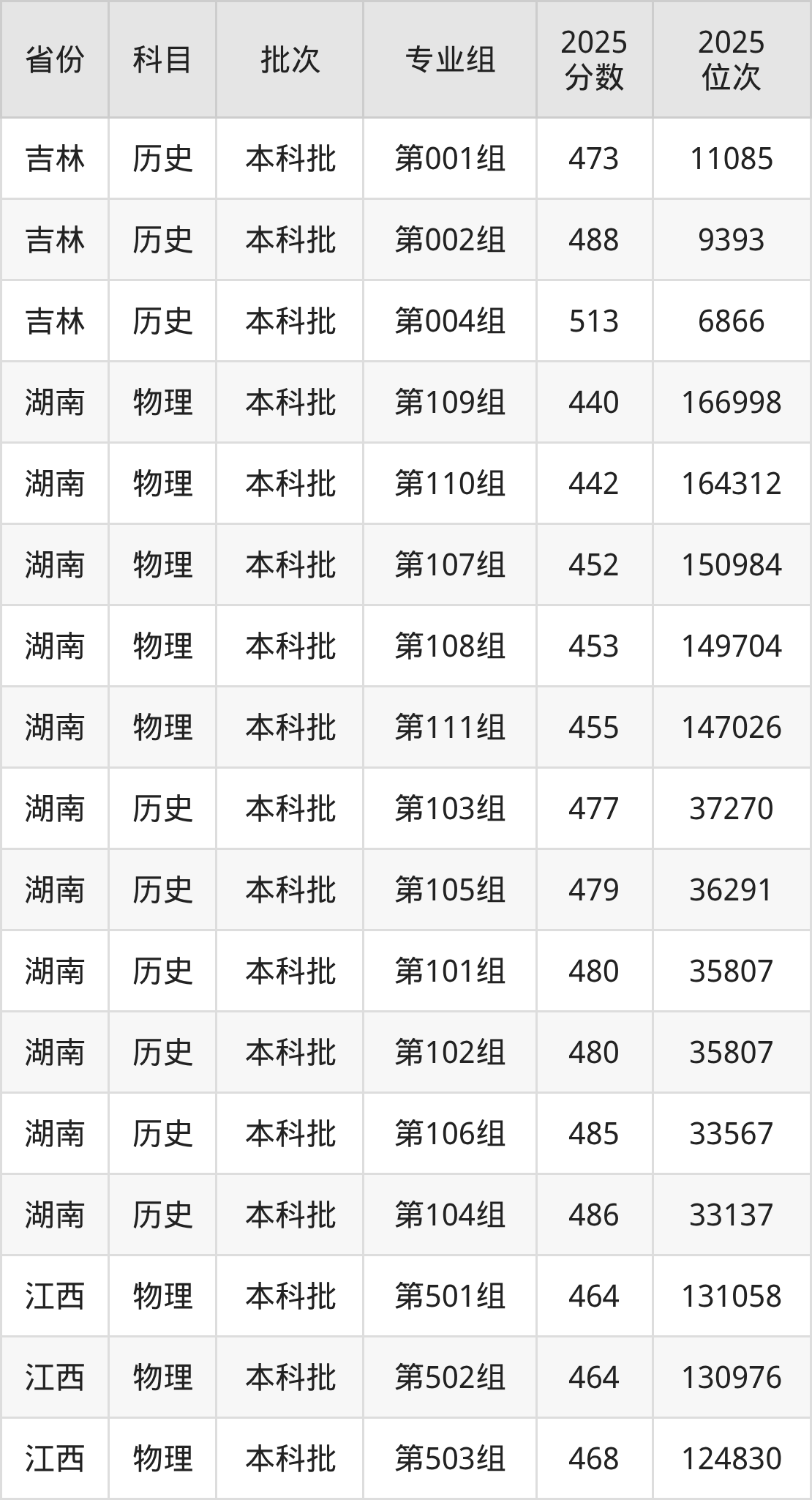 普通类本科物理类最低477分,本科历史类最低493分
