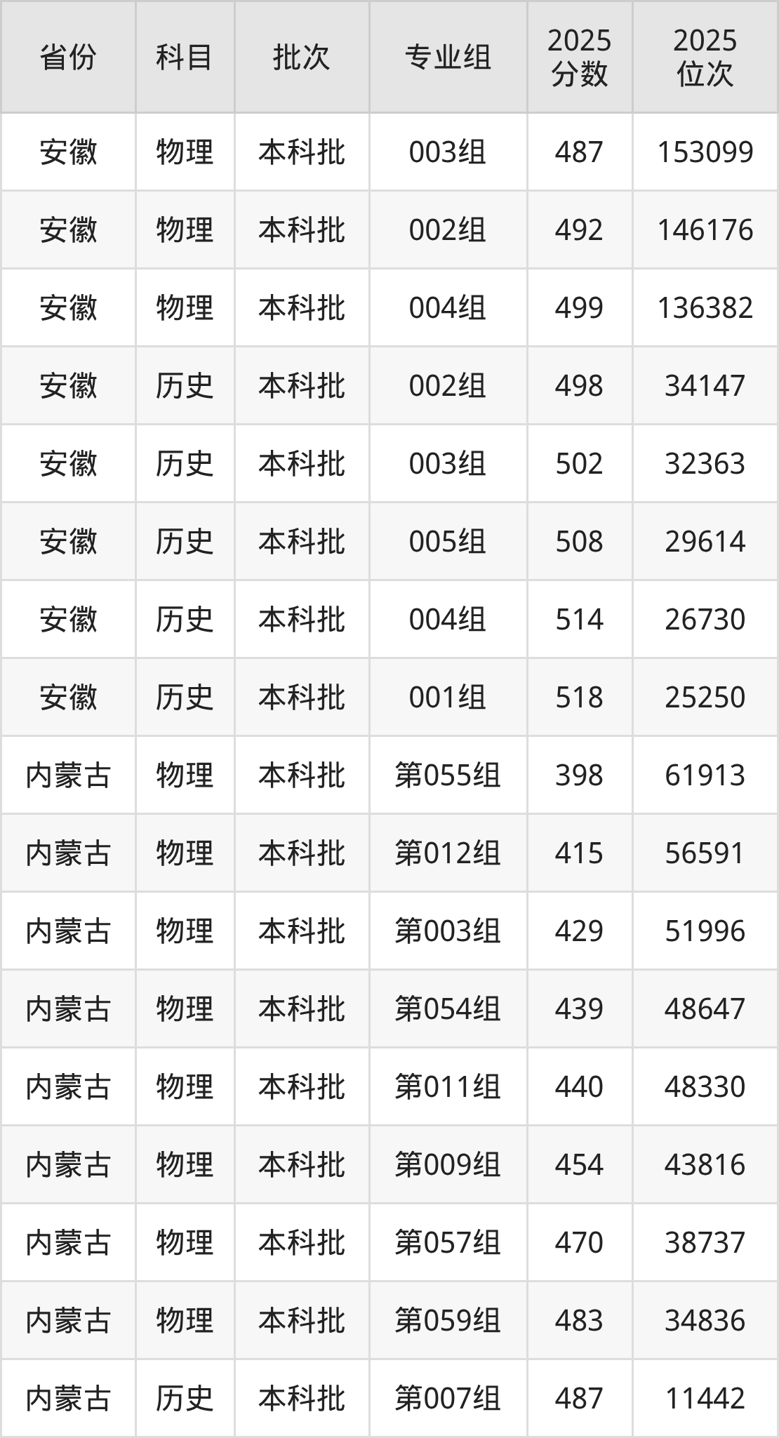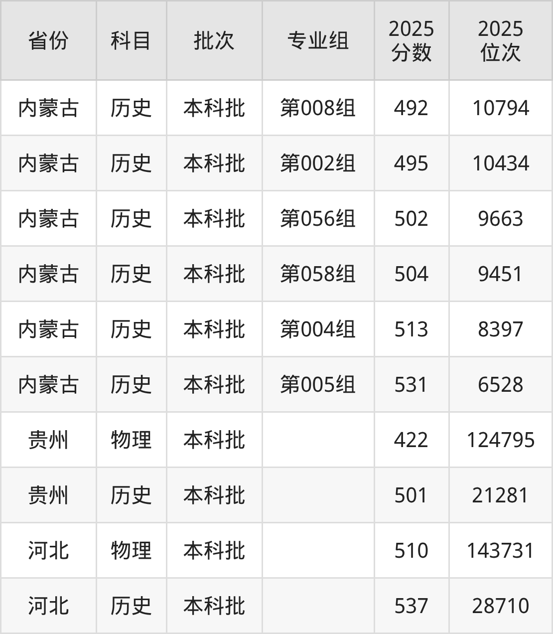 内蒙古科技大学包头师范学院第001组:2025年投档录取最低分为493分,录取最低位次为22260名。