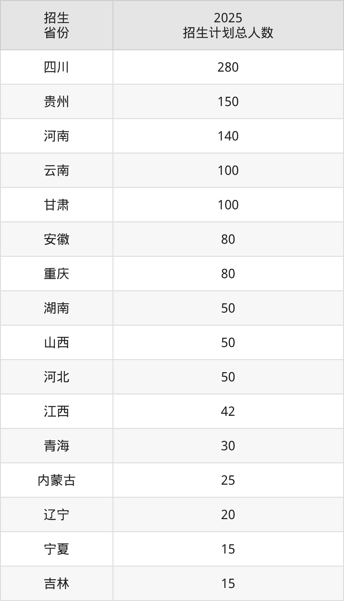 2025年湖北三峡职业技术学院面向全国22个省市开展专科招生;招生专业共38个,招生人数共1280人。湖北三峡职业技术学院在各省具体招生人数情况如下表。