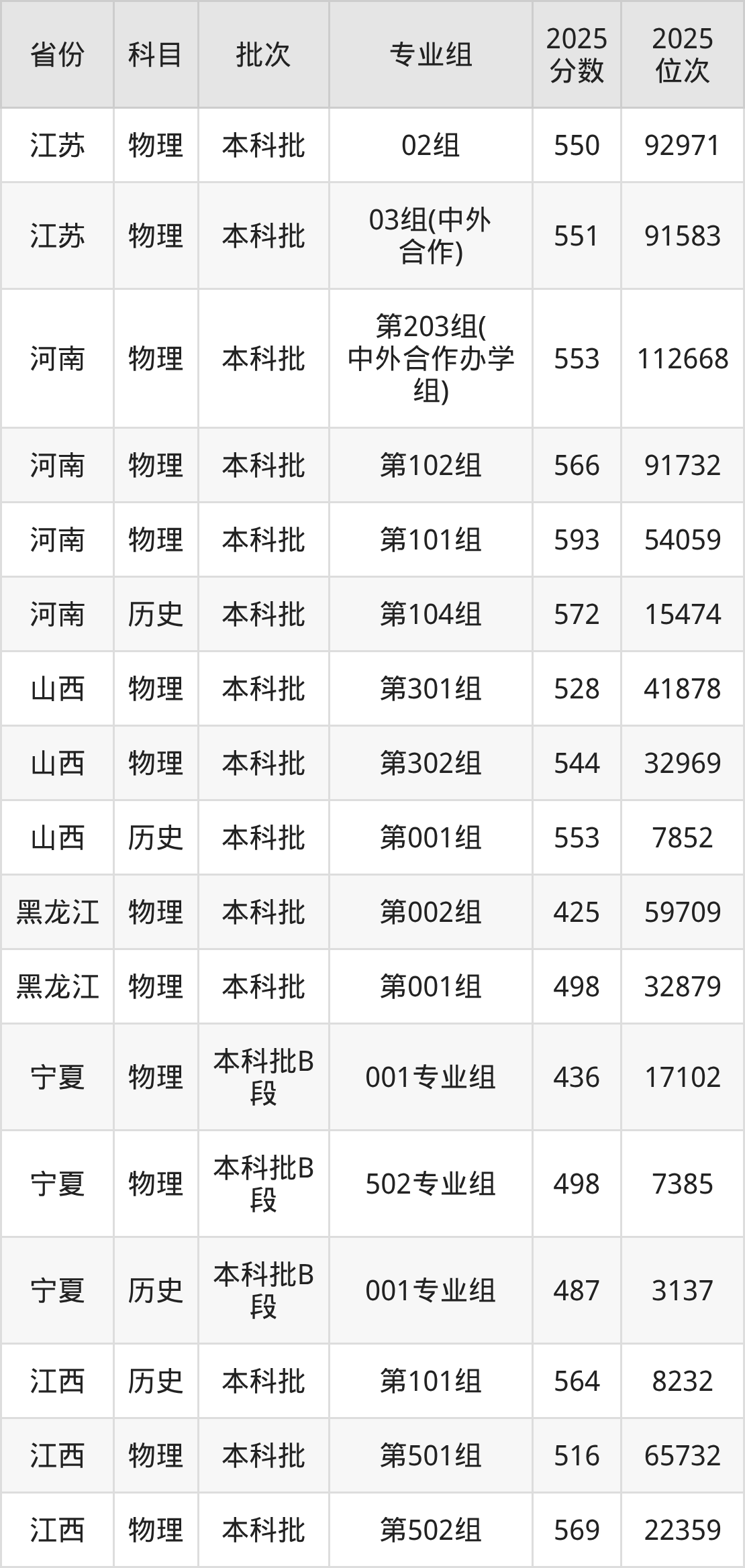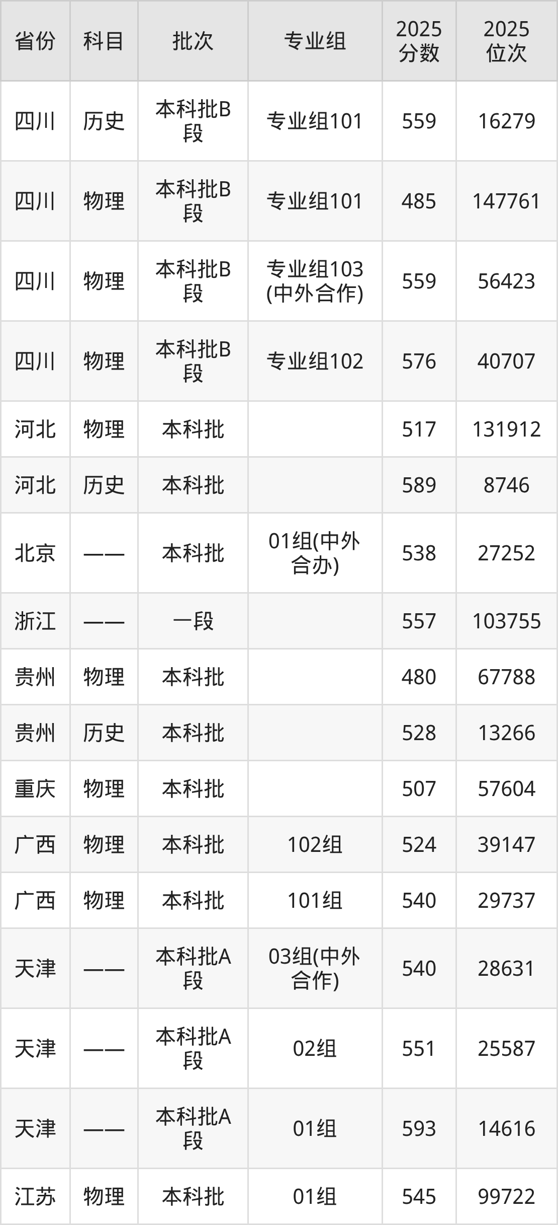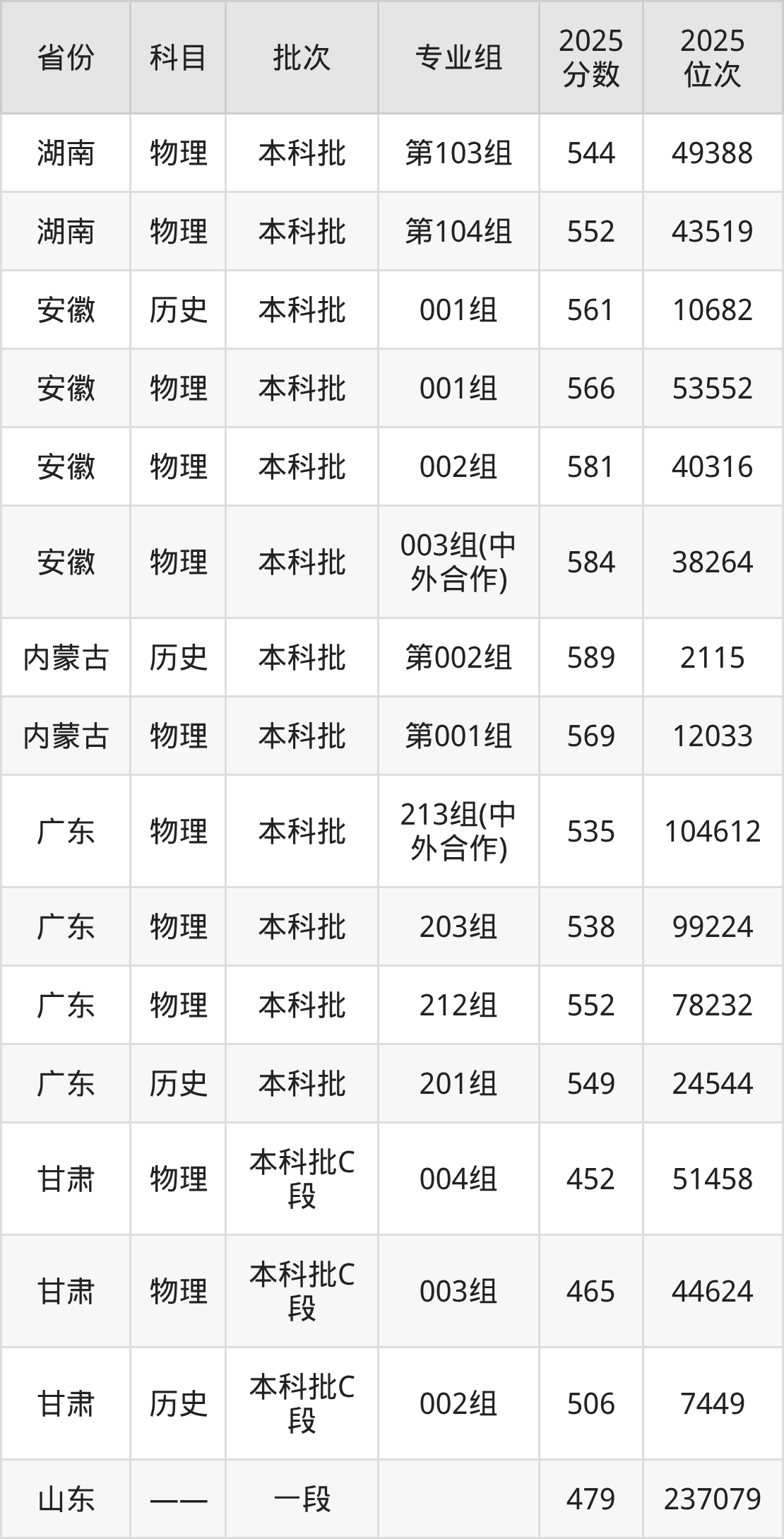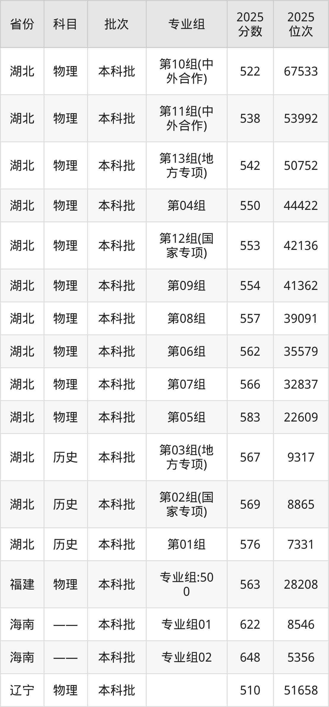2025年在本科物理类进行招生,各专业组分数线详情如下: