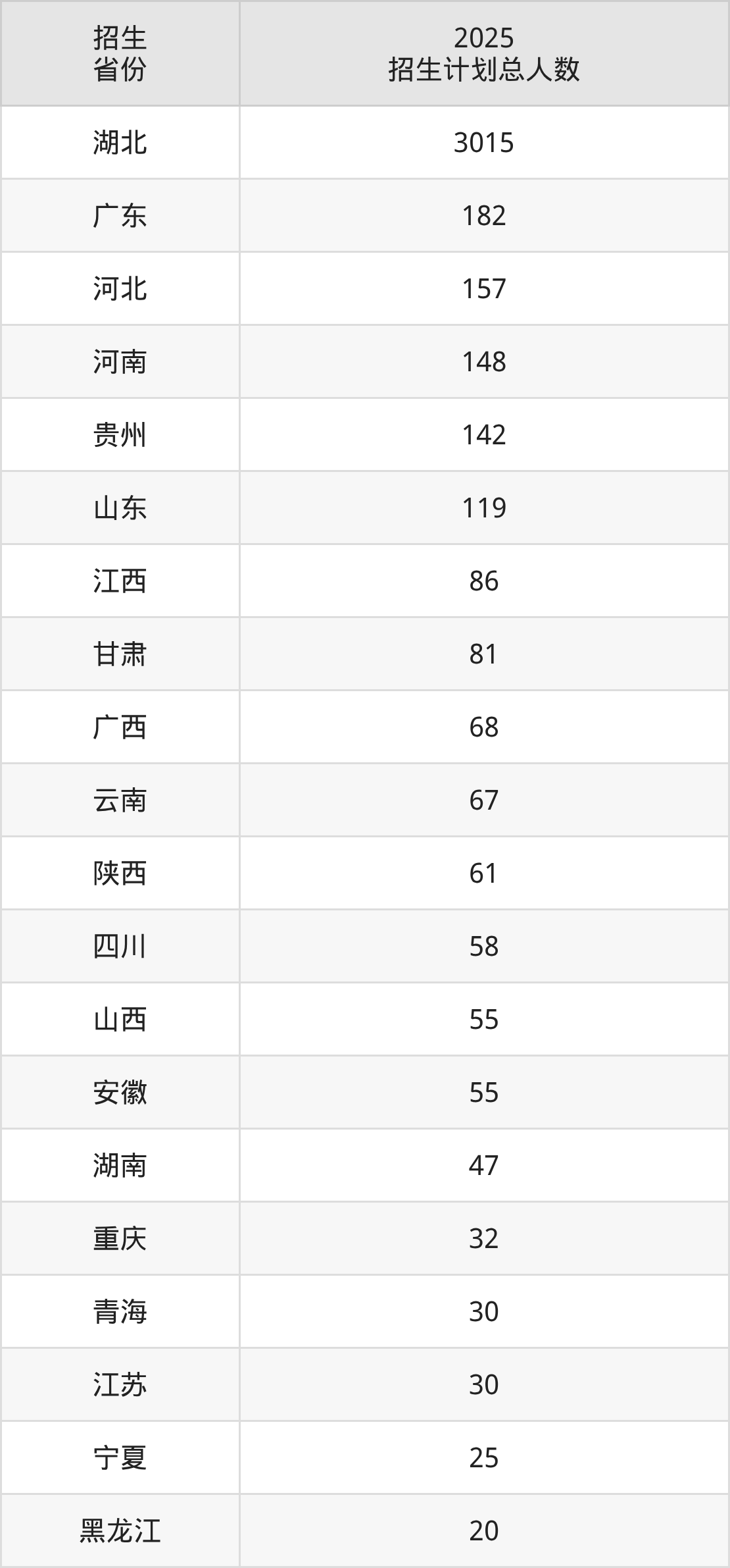 2025年湖北工业大学面向全国26个省市开展本科招生;招生专业共52个,招生人数共4552人。2025年在湖北省招生计划总人数是3015人,其中,湖北工业大学在湖北省招生人数最多的是电气工程及其自动化。湖北工业大学在各省具体招生人数情况如下表。