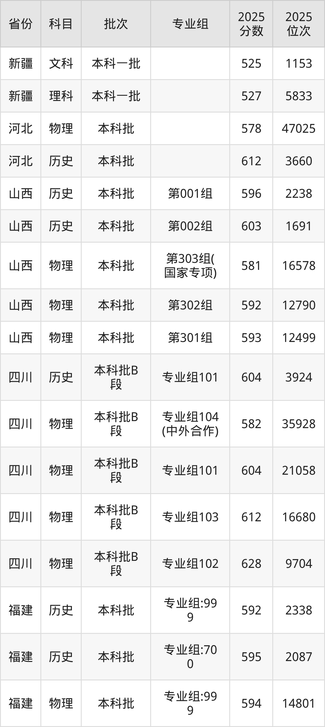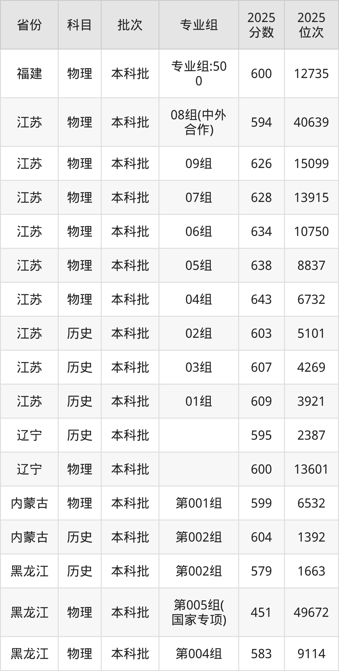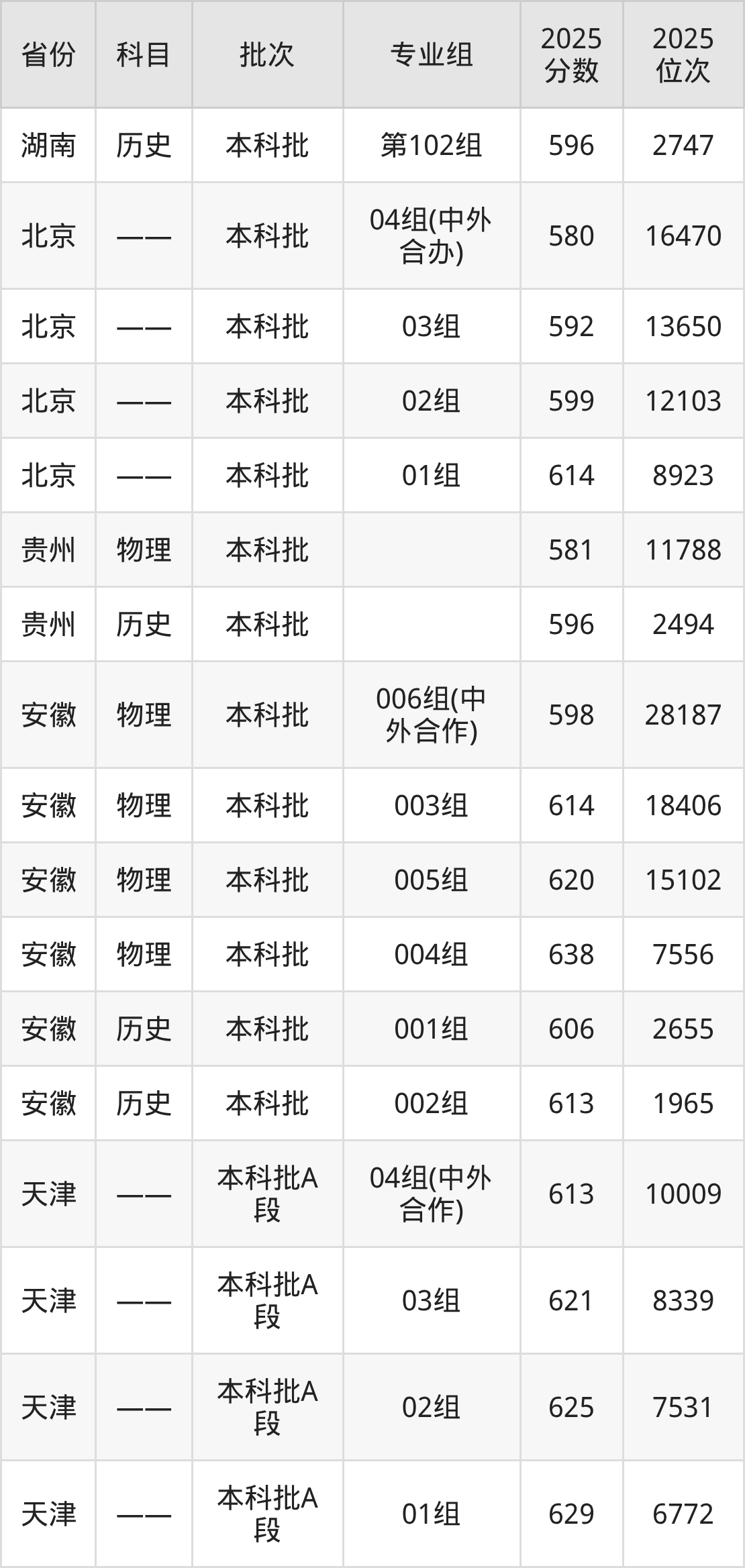 普通类本科物理类最低581分,本科历史类最低596分