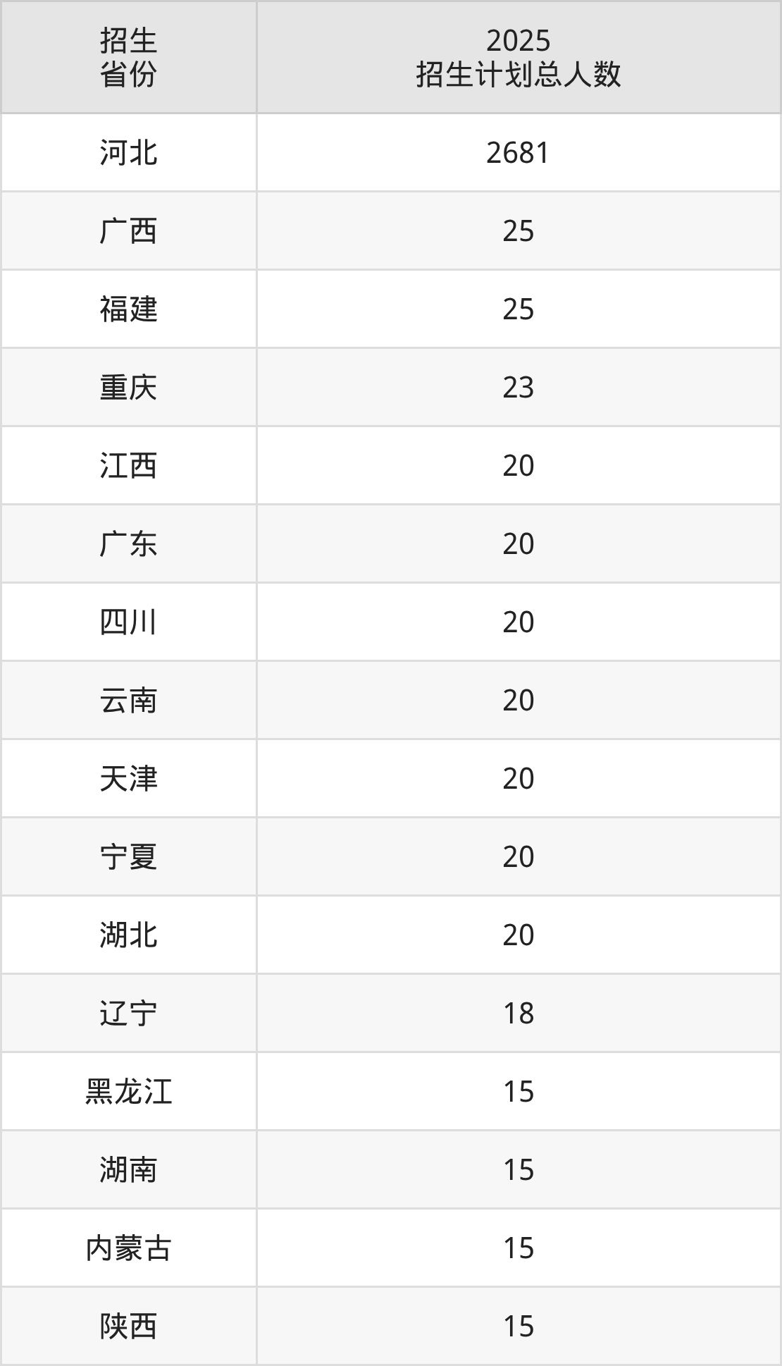 2025年沧州师范学院面向全国22个省市开展本科招生;招生专业共39个,招生人数共3040人。
