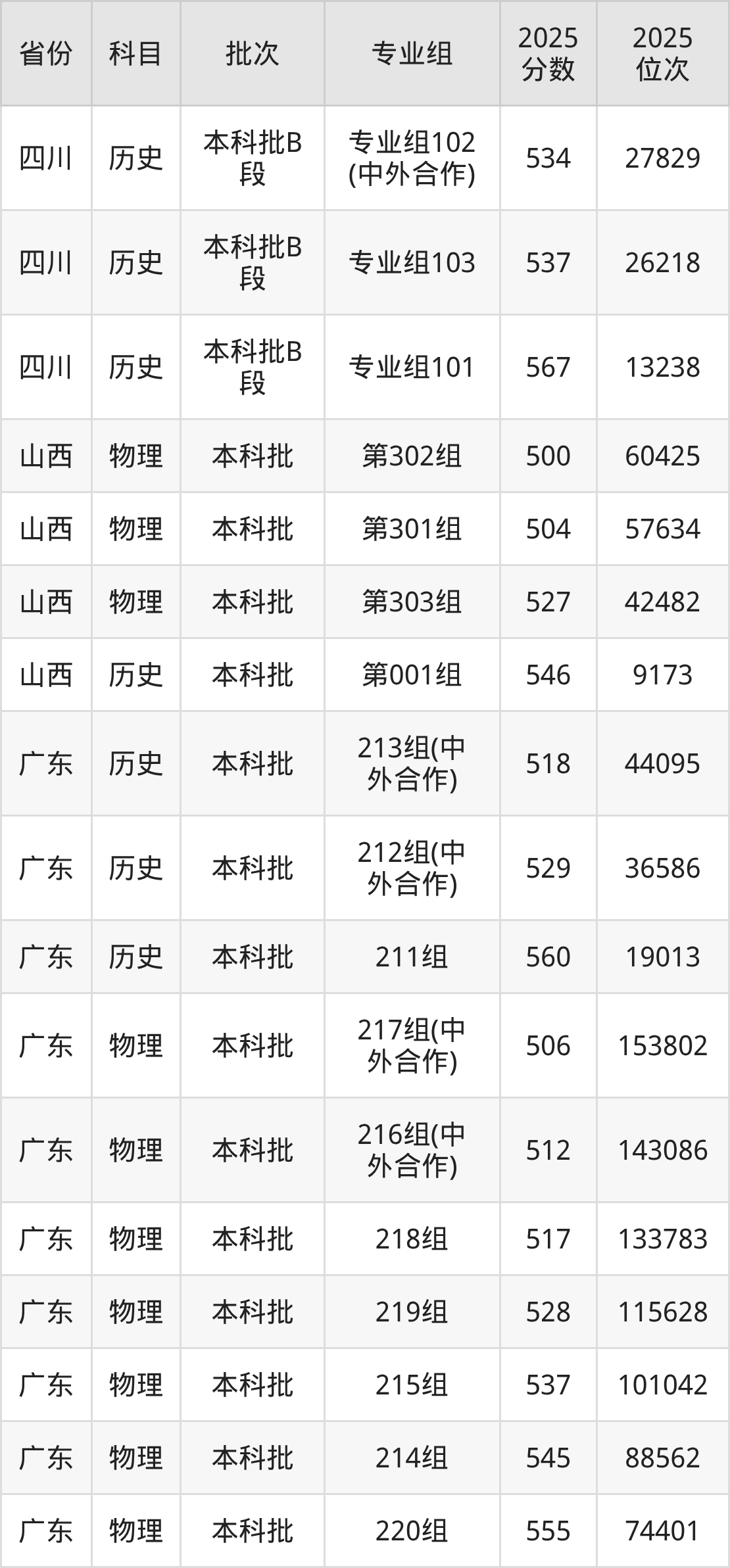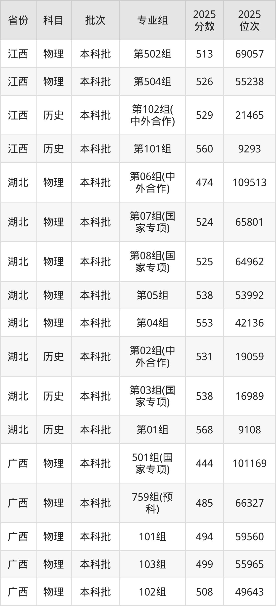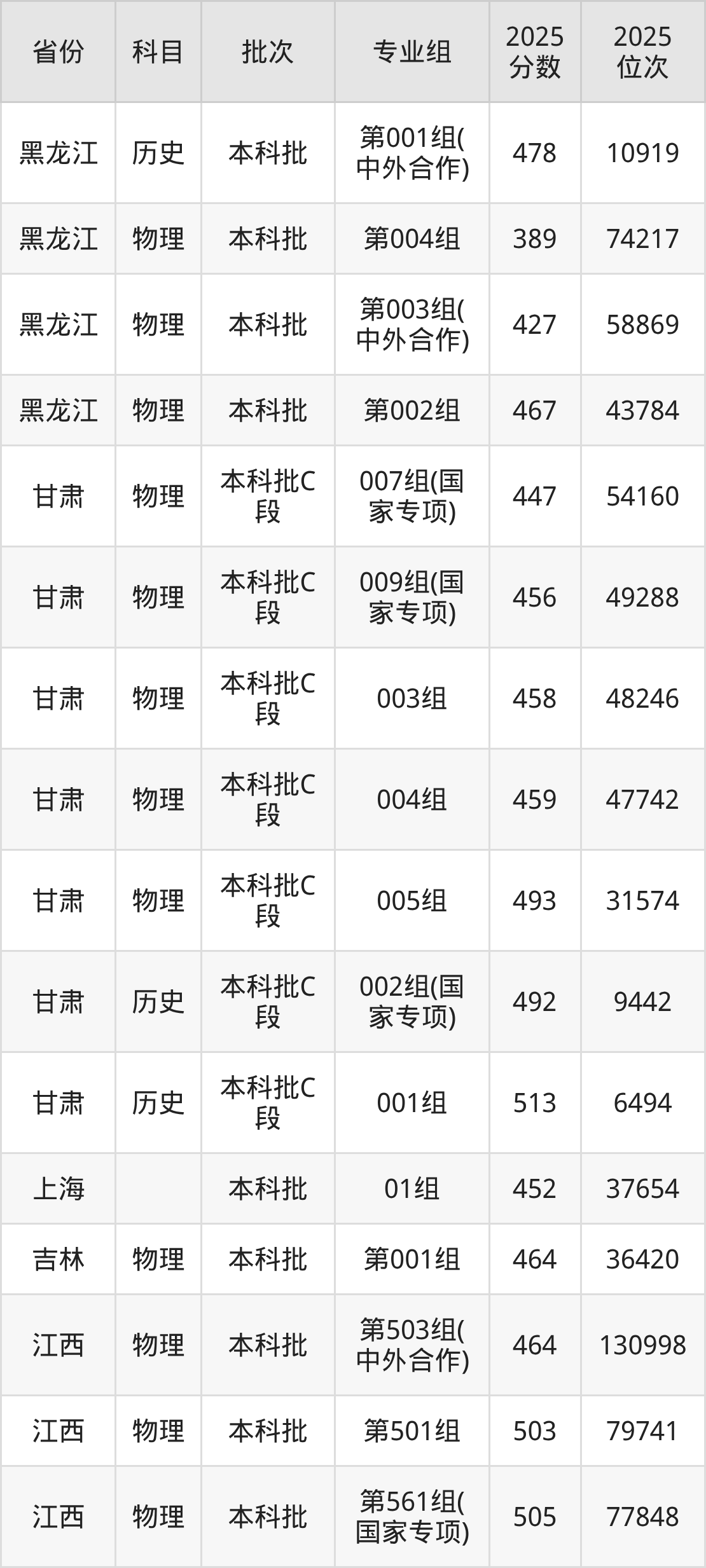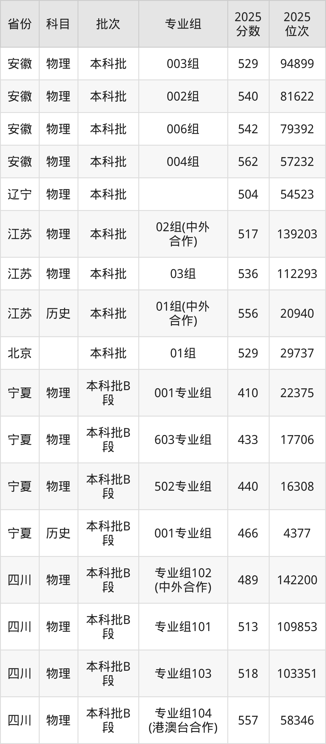 2025年在本科物理类进行招生,各专业组分数线详情如下: